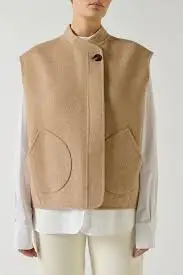 Veste sans manches en laine double face beige chiné