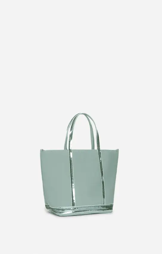 Ce vert bleu très clair, presque poudré, apporte une élégance apaisante à la célèbre toile de coton de Vanessa Bruno. Compact, sécurisé par son zip et illuminé par ses paillettes argentées, c’est le sac « bijou » qui s’accorde avec toutes vos tenues, des plus décontractées aux plus apprêtées.