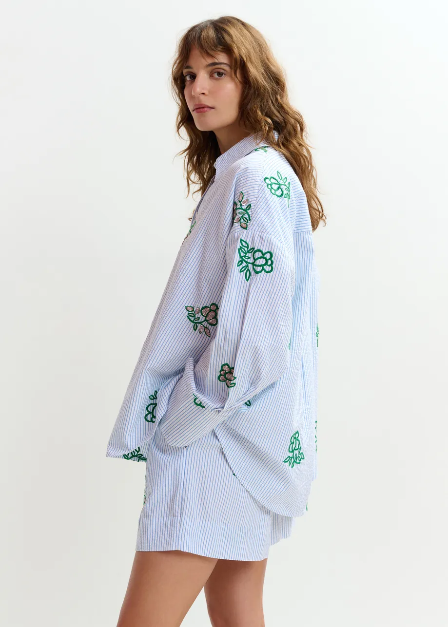 Matière : 100% coton, paillettes 100% Acrylique, Perles 100% verre, broderie 100% polyester