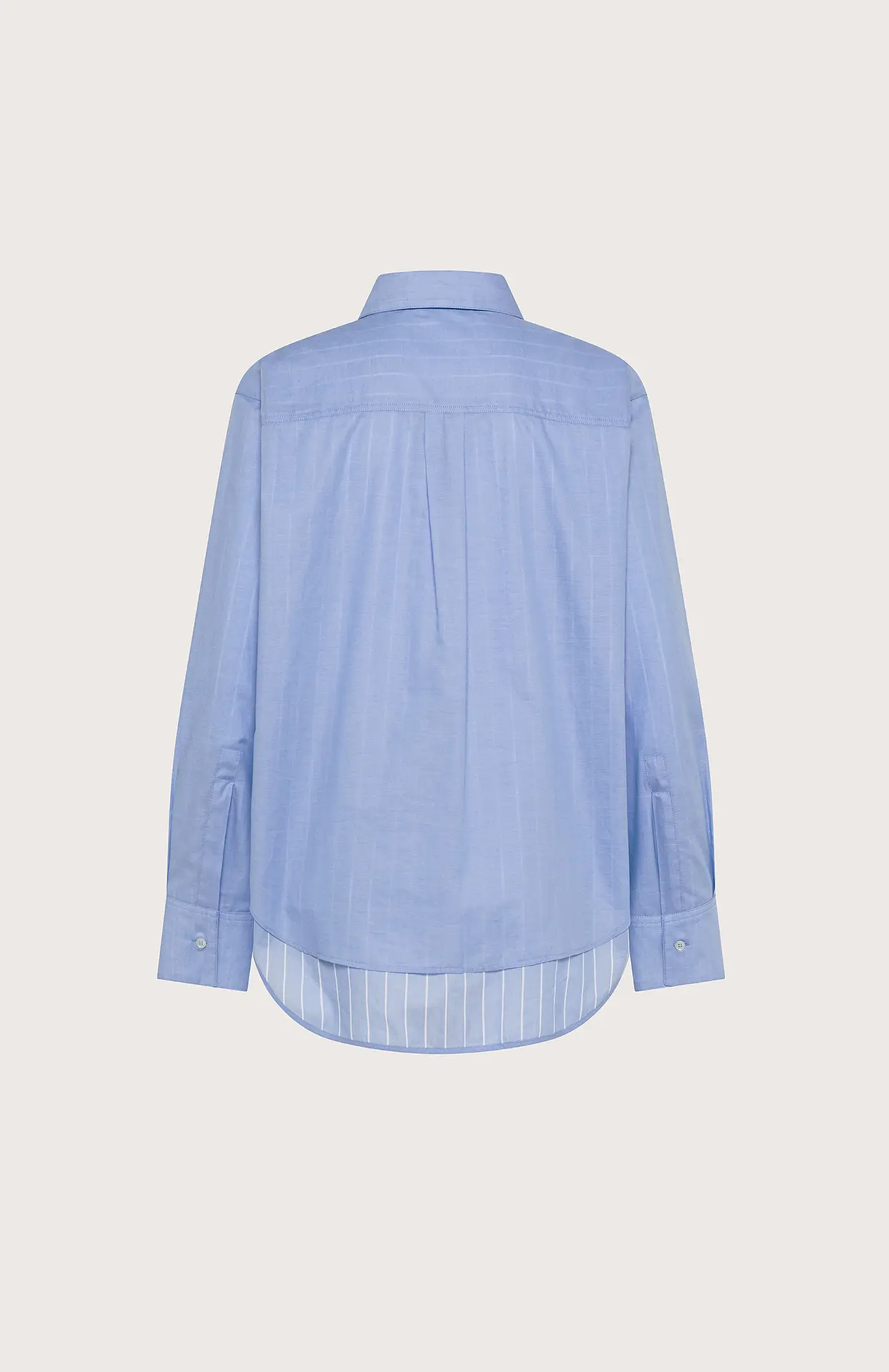 Comment la porter avec style ? Pour un look résolument moderne à Granville, portez-la du côté rayures larges avec le jean Calvin Brut et les Baskets Rocket Navy pour un esprit « riviera » assumé. Pour un style plus minimaliste, retournez-la et associez-la au pantalon Hero Sauge et à la ceinture Ninon Caramel. À la boutique de la rue Couraye, nous aimons aussi la porter ouverte sur le top Pampa Vert d’Eau, en laissant apparaître le revers contrasté au niveau des poignets retroussés pour un jeu de motifs subtil.