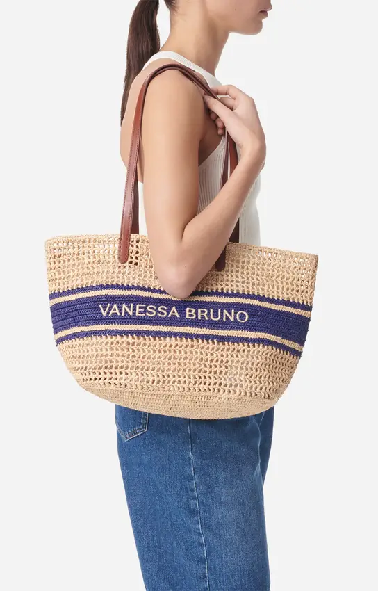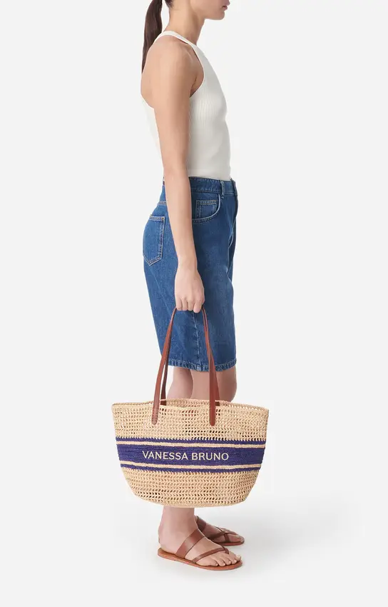 Le Panier en raphia marine à Rayures revisite le grand classique de l’été avec une énergie nouvelle chez Concept 102. Entièrement crocheté à la main, ce sac joue sur des contrastes de couleurs horizontaux qui soulignent son travail artisanal. Alliant la souplesse de la fibre naturelle à la noblesse de ses anses en cuir, il est le compagnon idéal pour une journée d’évasion, capable d’accueillir tous vos essentiels avec un style bohème et graphique incomparable