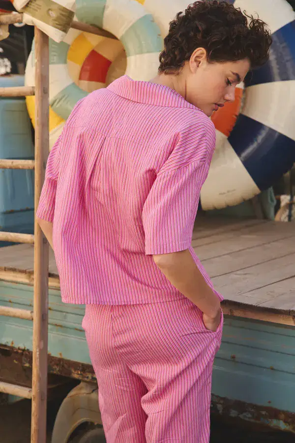 Avec le Pantalon Tom, La Nouvelle réinterprète le vestiaire de détente avec une précision mode remarquable. Chez Concept 102, nous apprécions particulièrement sa jambe large qui crée un mouvement aérien à chaque pas. L’imprimé Beachwear Stripes joue avec les codes classiques de la marinière tout en les déclinant sur une pièce structurée et féminine.