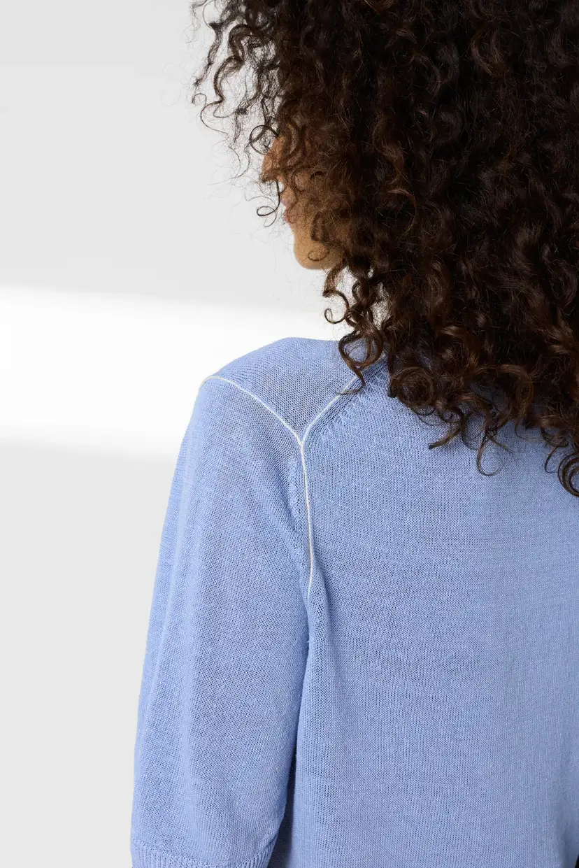 Le Loumia propose une coupe droite moderne et confortable. Ses manches courtes et son col rond classique en font une pièce polyvalente, facile à glisser sous une veste ou à porter seule dès les premiers rayons de soleil. On apprécie la discrétion du logo brodé en ton sur ton au bas de la pièce, signature subtile du savoir-faire Darel.