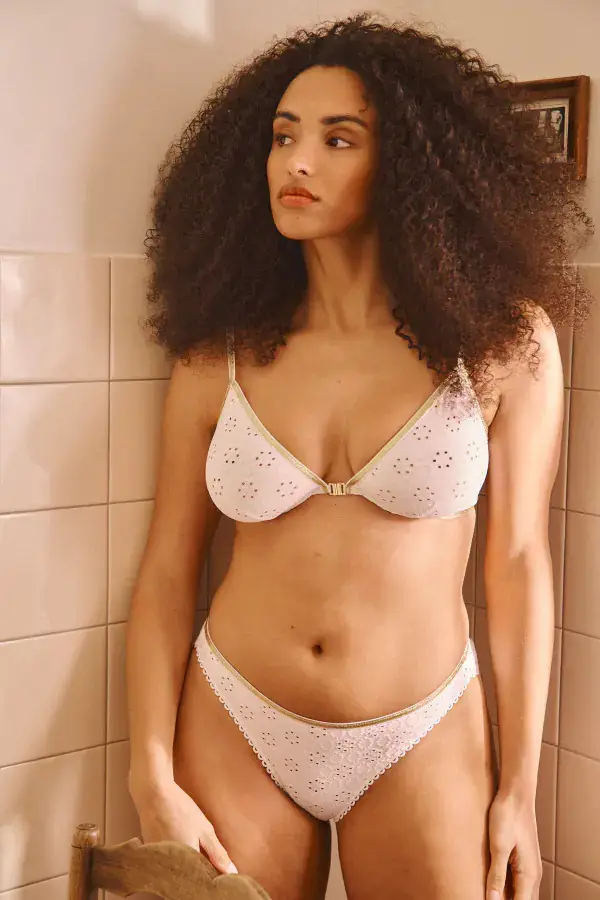 « Le soutien-gorge Jack est une petite révolution pour nos clientes qui aiment l’esprit La Nouvelle mais qui ne jurent que par les armatures. Rue Couraye, il rencontre un immense succès car il parvient à être extrêmement confortable tout en structurant joliment la poitrine. Ce que j’adore avec le coloris White Summer, c’est sa capacité à rester invisible sous les vêtements clairs tout en étant une pièce magnifique quand on la découvre. C’est le modèle que je conseille pour celles qui veulent se sentir maintenues sans sacrifier cette allure bohème et scintillante que nous aimons tant à Granville. »