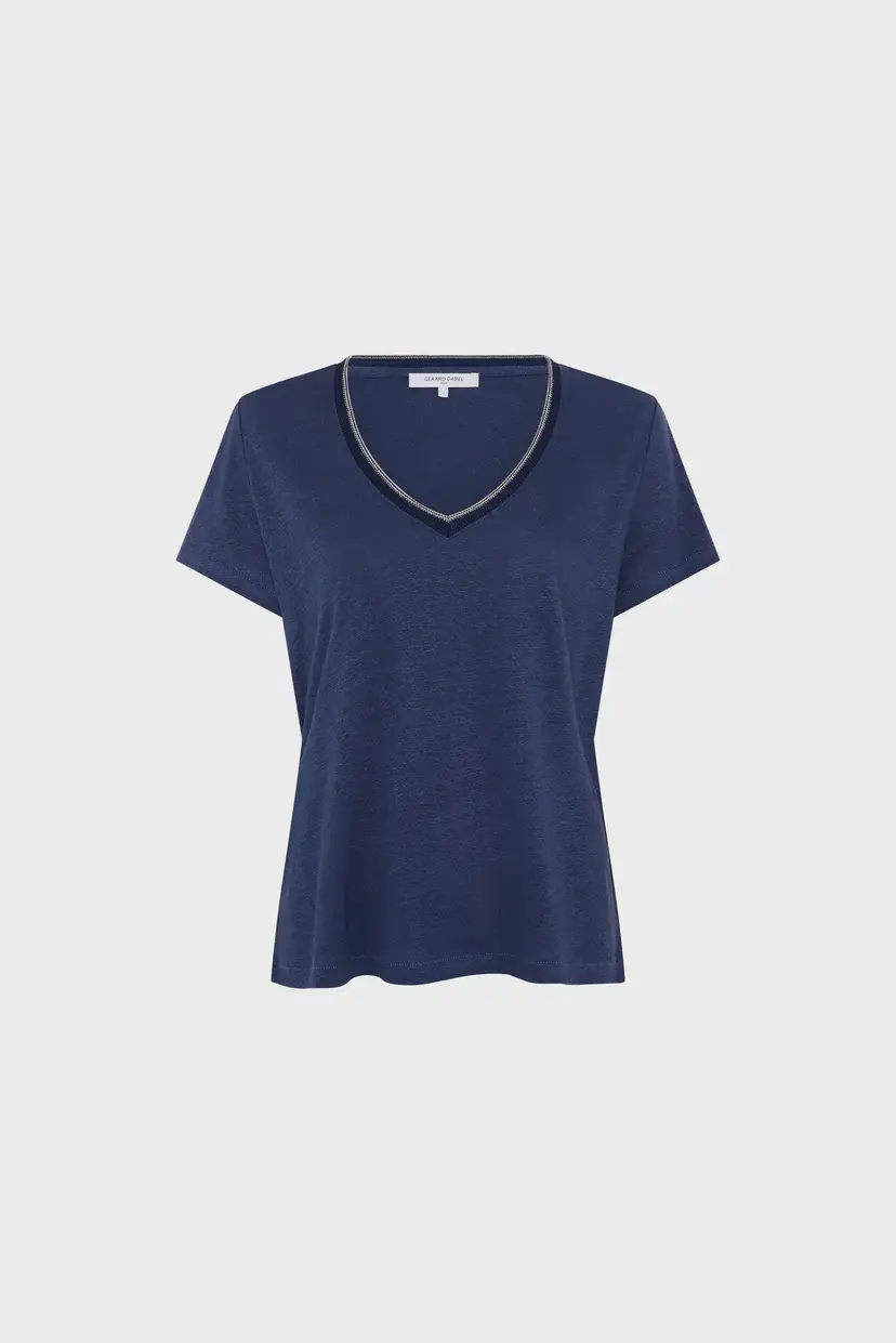 T-shirt V en lin à lurex – MIRANA