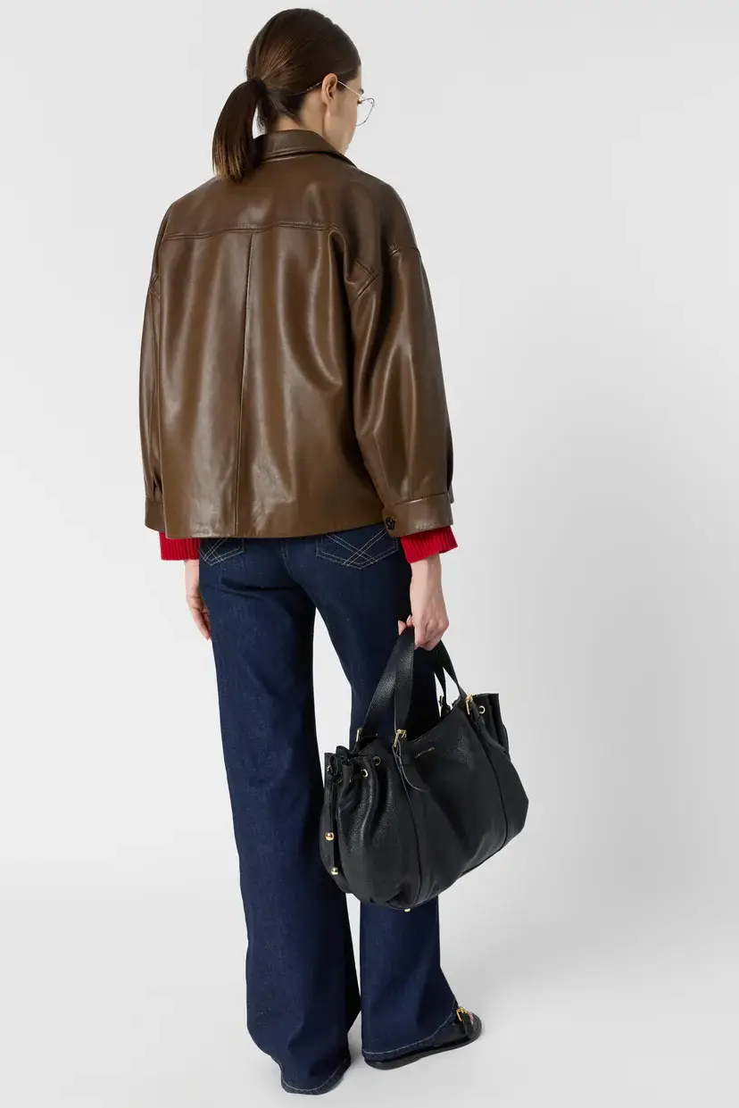 Le cuir d’agneau est une matière vivante. Pour préserver sa souplesse et l’éclat de sa patine, nous vous recommandons un nettoyage par un spécialiste du cuir uniquement. Évitez toute exposition prolongée à la pluie ou à une source de chaleur directe.