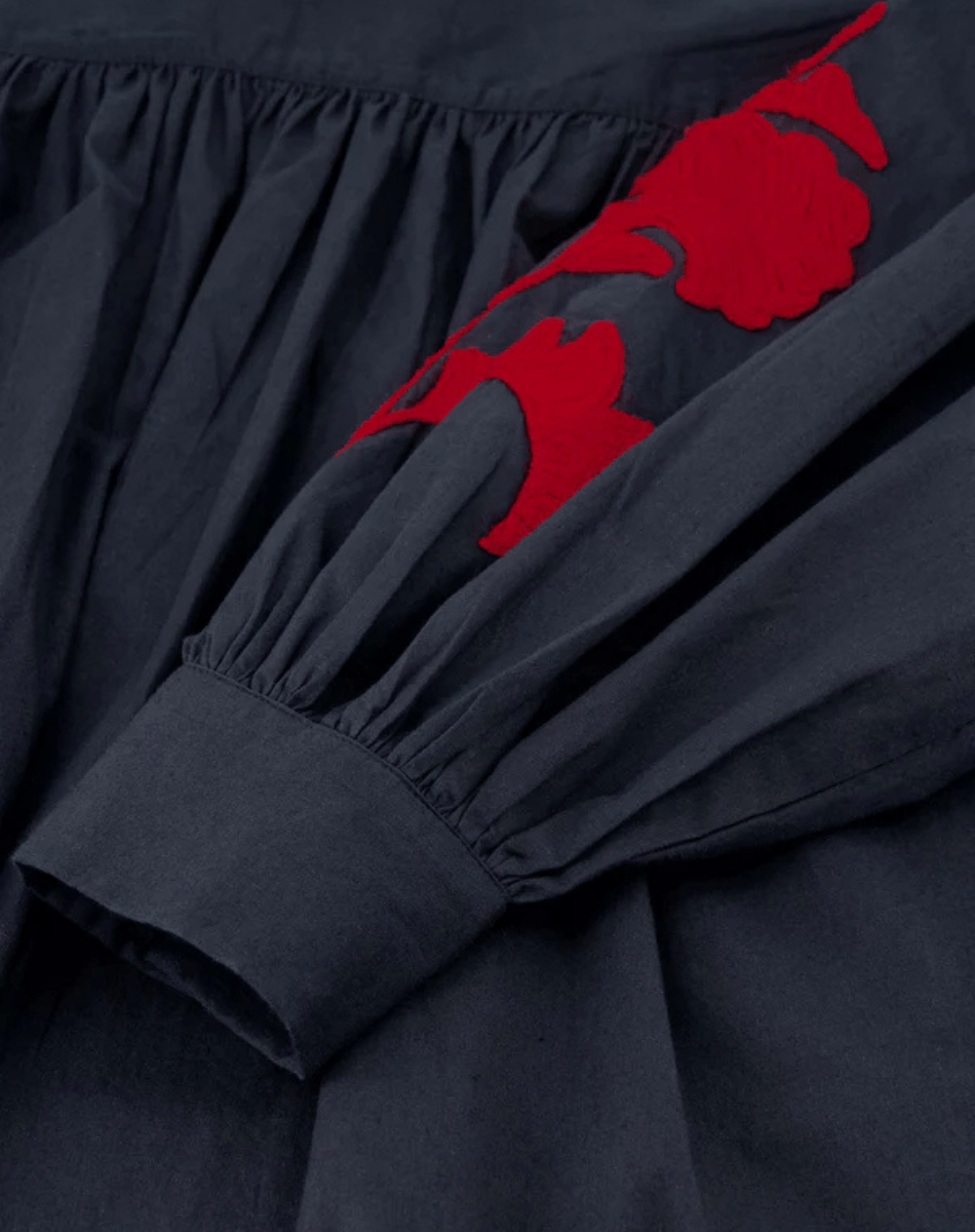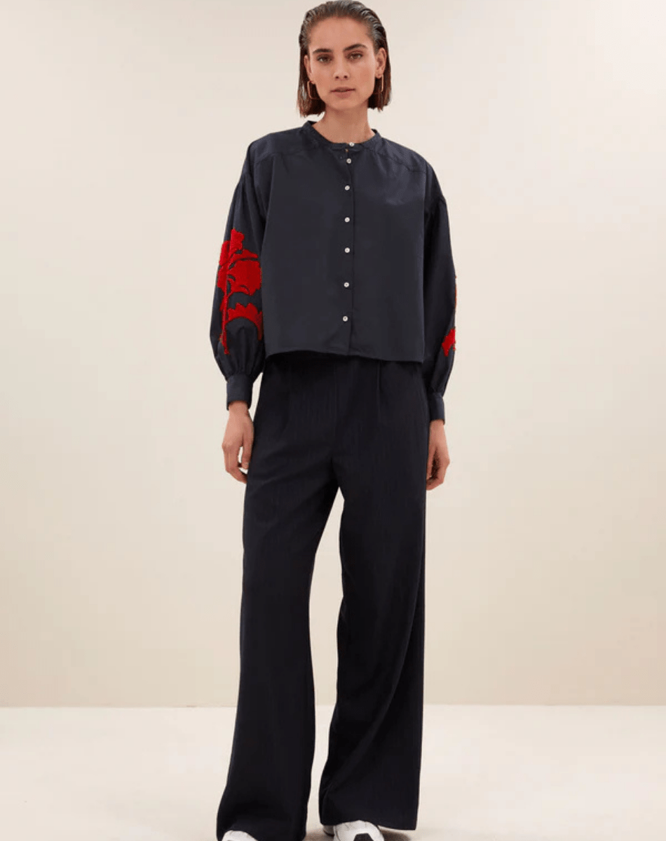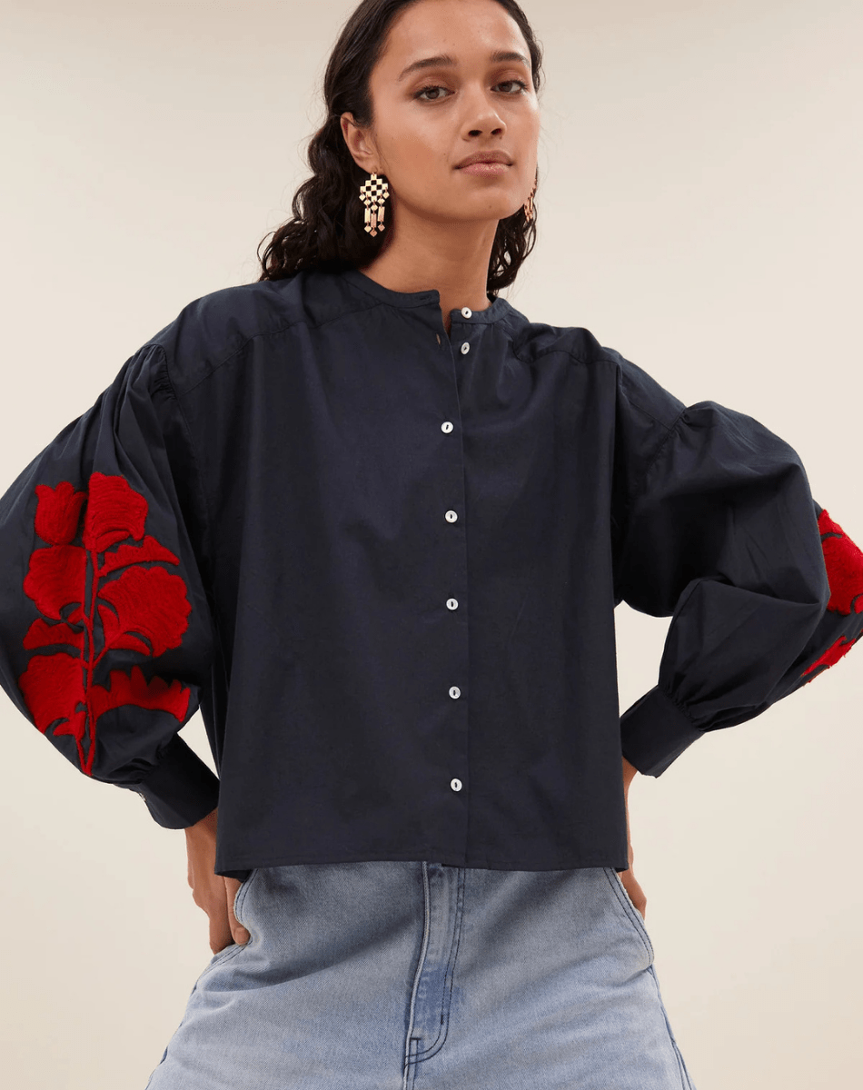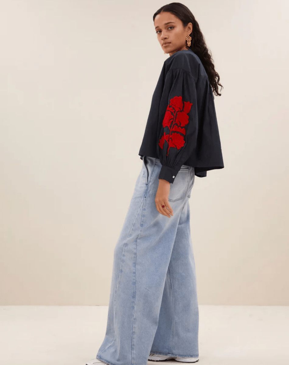 La blouse Janet séduit par sa coupe ample et confortable. Courte et dotée de manches longues, elle s’adapte à toutes les occasions. Ses boutons en nacre et sa broderie discrète apportent une note élégante et intemporelle.