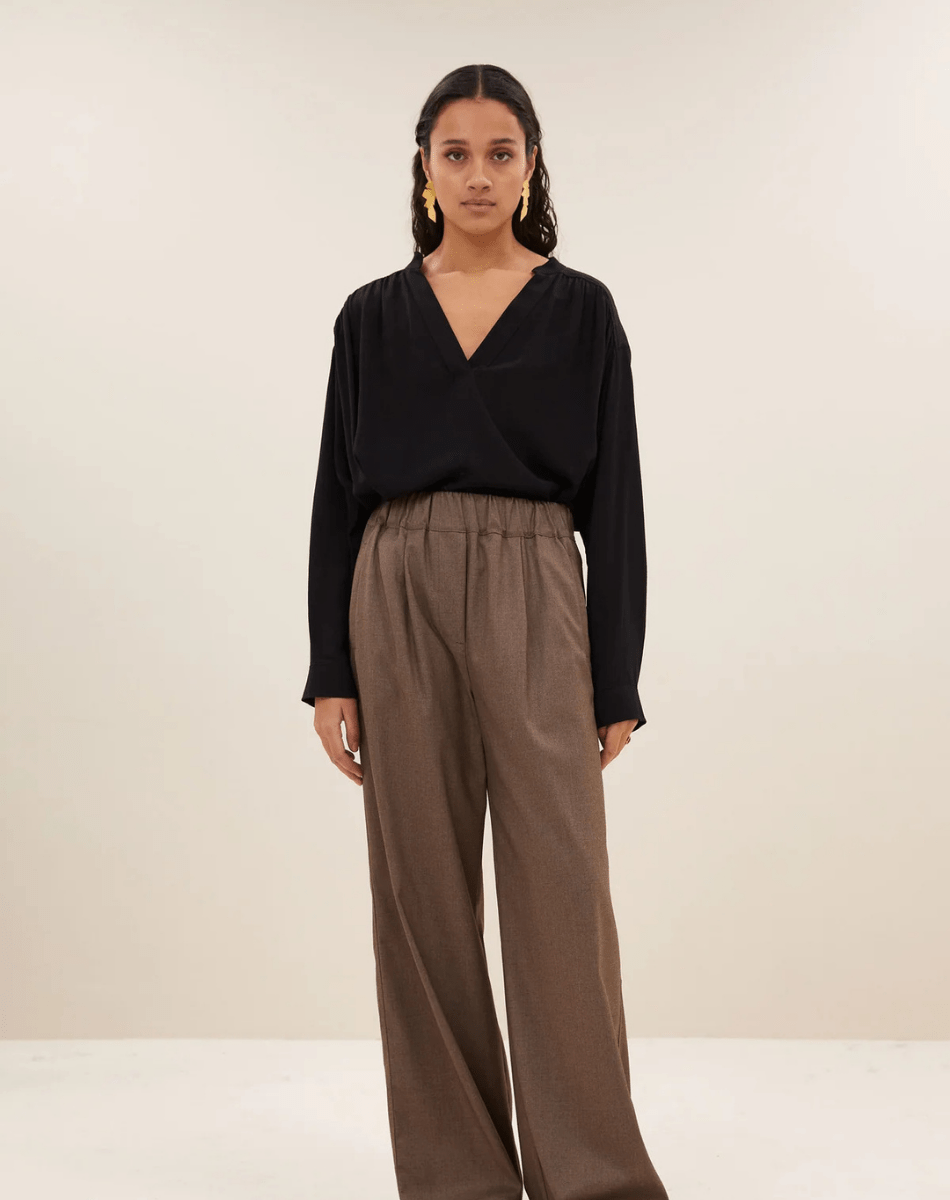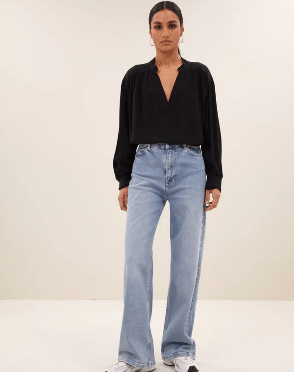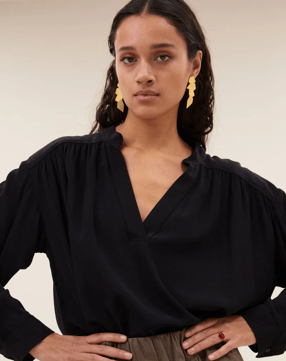 La blouse Meja en viscose séduit par sa coupe fluide et confortable. Douce au toucher, elle se distingue par ses détails plissés, son décolleté en V et ses manches longues, pour un style casual chic au quotidien.