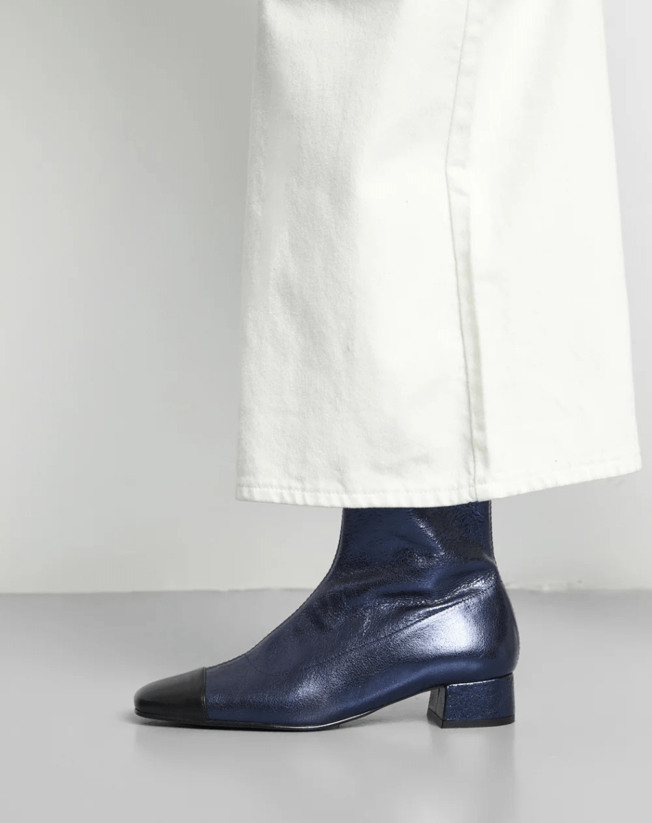 Laurie séduit dès le premier regard. Ces bottines deviendront rapidement un incontournable de votre garde-robe, attirant tous les regards sur leur passage. Leur talon de 3 cm offre une élévation confortable, tandis que la fermeture éclair assure un enfilage facile. Confectionnées en cuir souple bleu métallisé, elles se distinguent par un bout contrasté élégant.