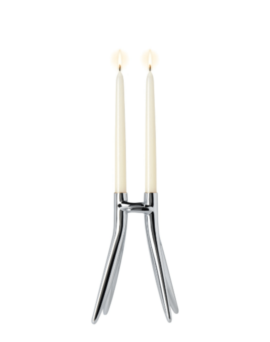 Abbracciaio de Kartell est une pièce poétique imaginée par Philippe Starck et Ambroise Maggiar : deux silhouettes en aluminium qui, placées face à face, évoquent une étreinte. Bougeoir double, il marie élégance et stabilité pour diffuser une lumière douce avec raffinement.