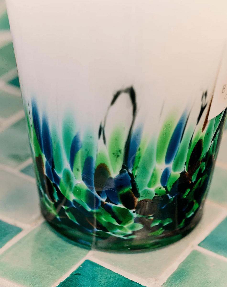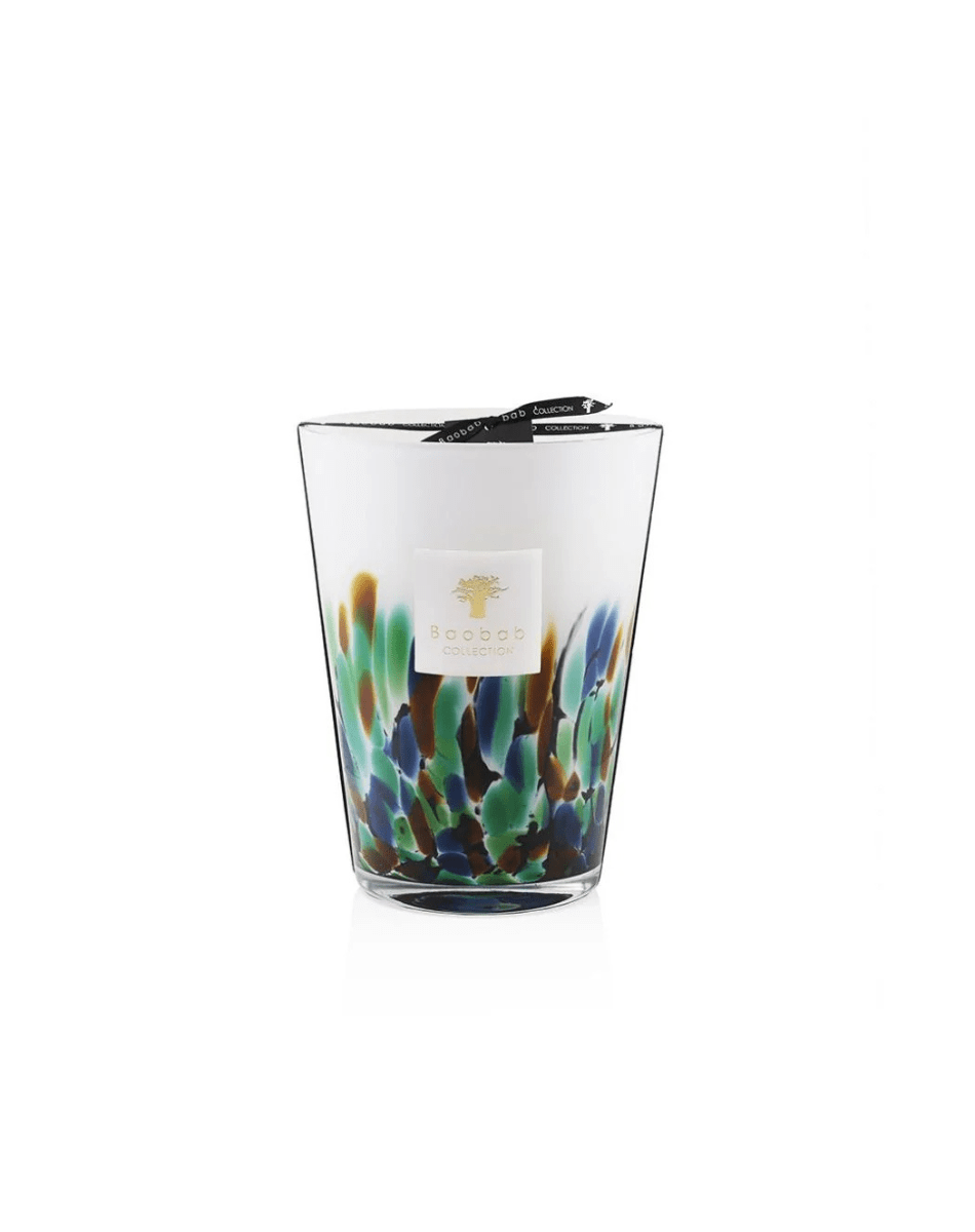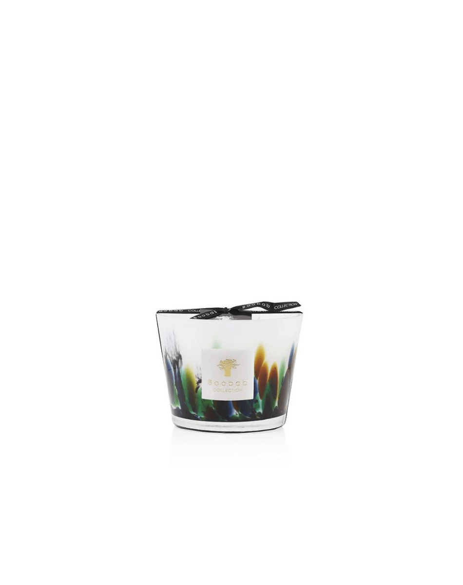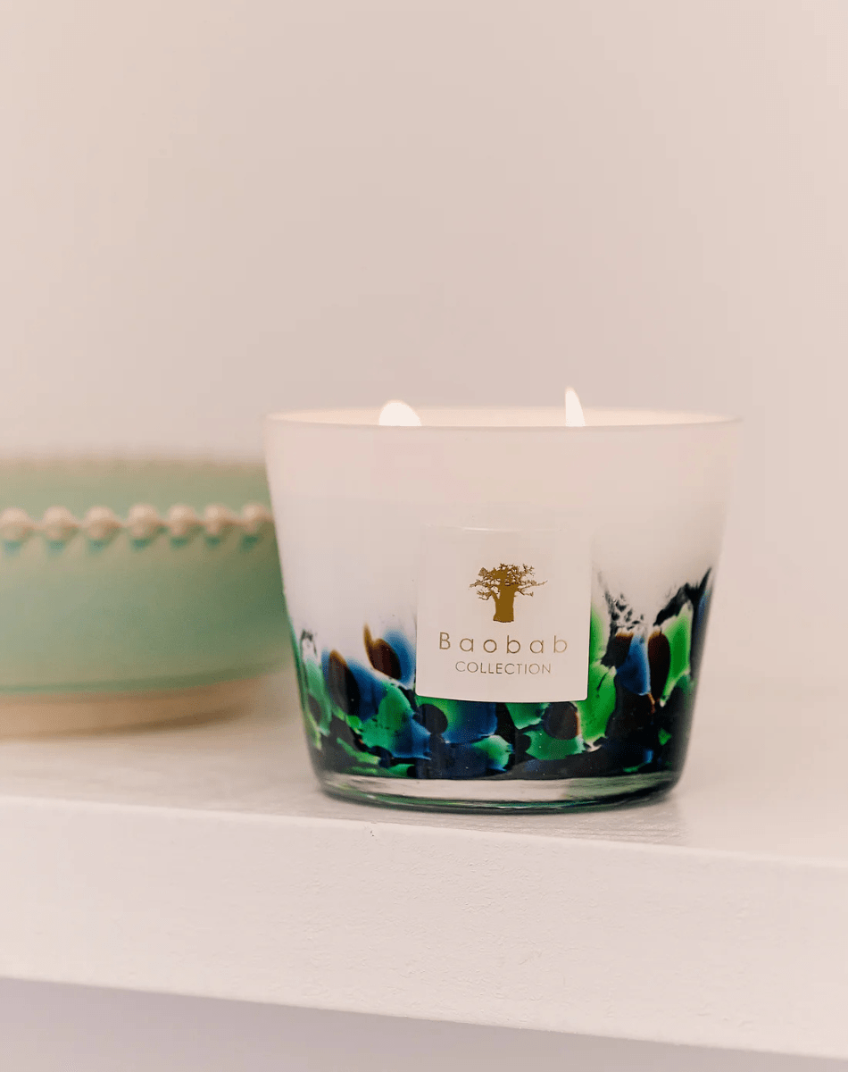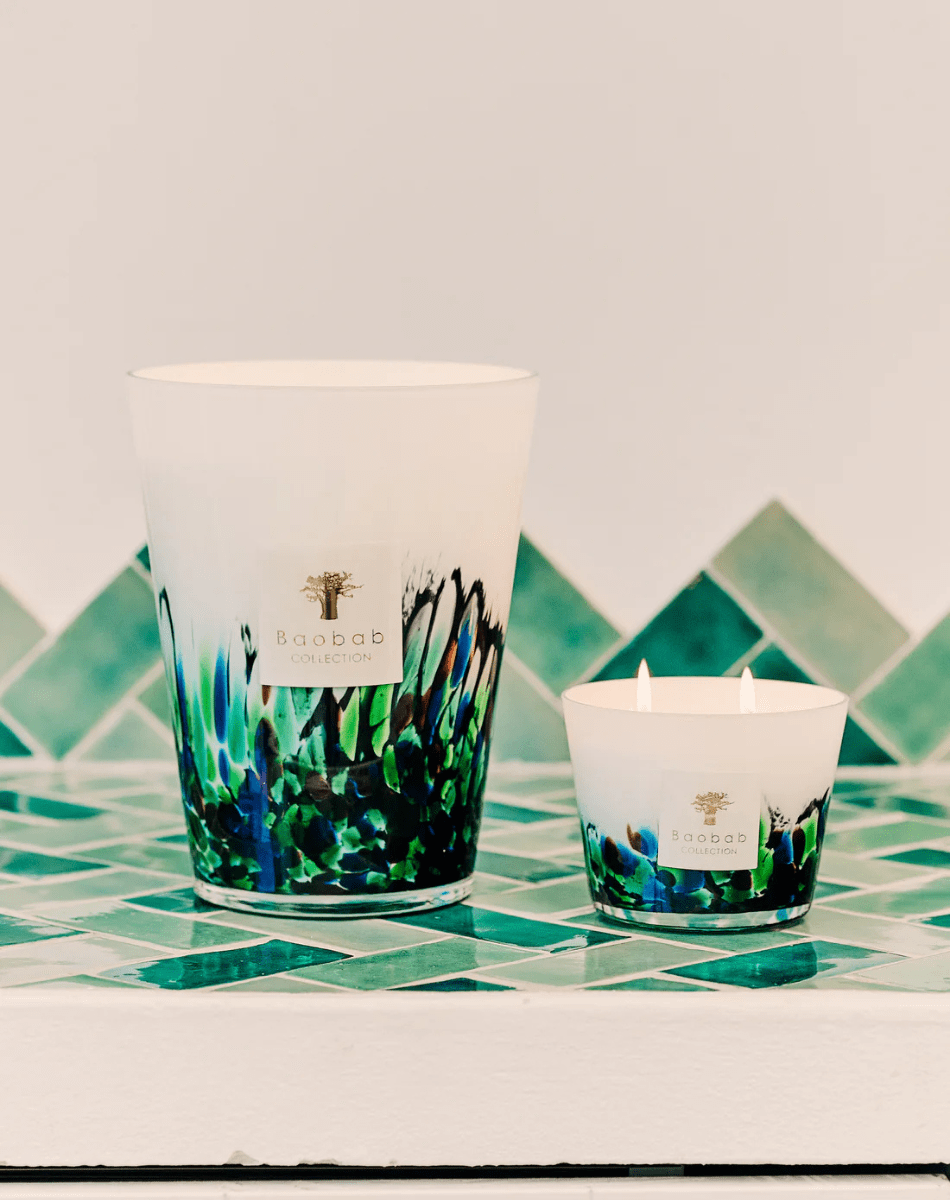 La bougie parfumée Rainforest Amazonia se présente dans un verre opalin soufflé à la bouche, incrusté de confettis de verre turquoise, bleu et brun. Chaque pièce est unique, les nuances se déposant de façon aléatoire dans la matière. Inspirée par la plus vaste forêt du monde, qui s’étend sur plus de 7,3 millions de km² dont la majeure partie au Brésil, elle rend hommage à une biodiversité exceptionnelle et aux tribus qui perpétuent encore aujourd’hui leurs rites ancestraux fascinants.