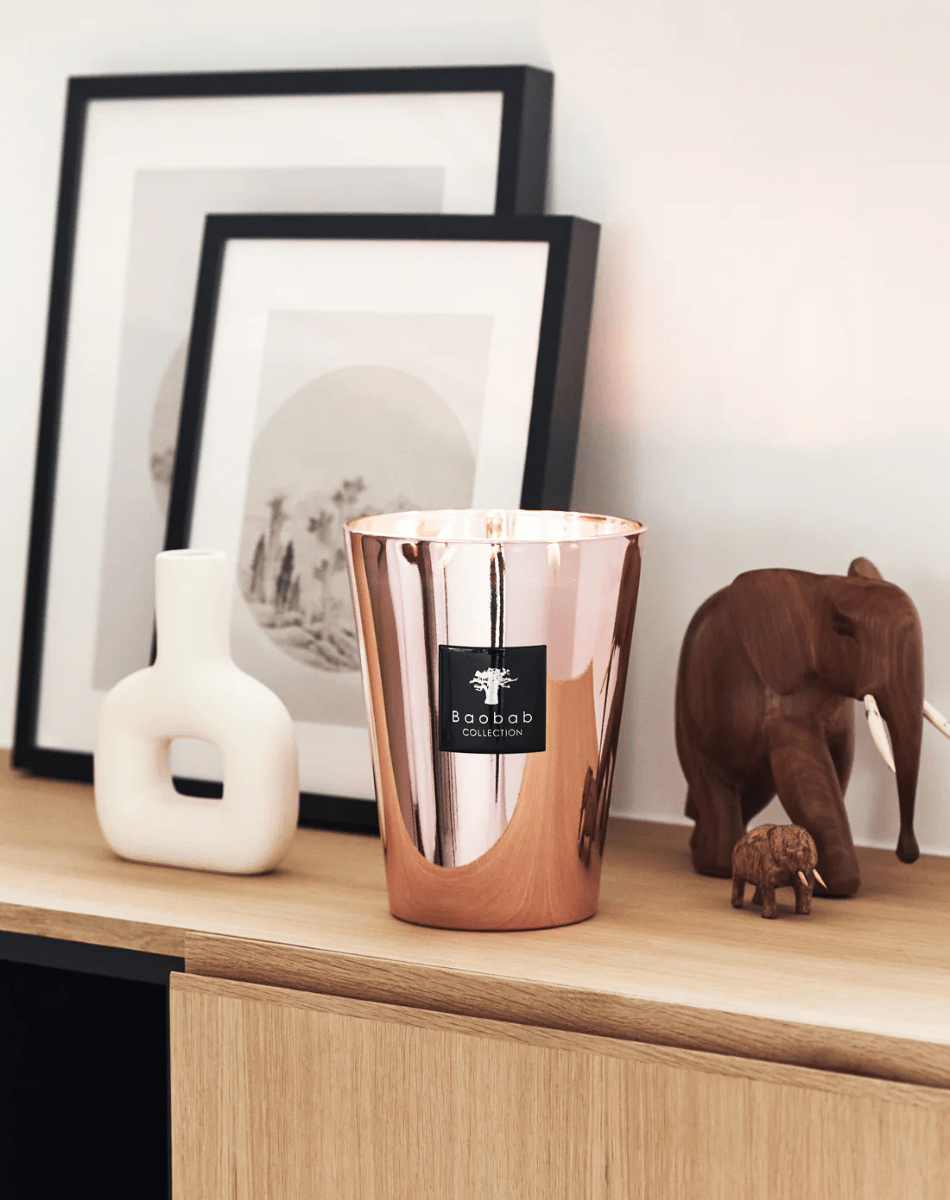 Habillé d’une métallisation subtile en rose poudré, le verre de la bougie parfumée Roseum conjugue raffinement décoratif et audace contemporaine. Véritable objet de design, elle se distingue par son éclat précieux. Son parfum floral aux accents musqués diffuse une aura féminine et sophistiquée, idéale pour sublimer vos intérieurs.