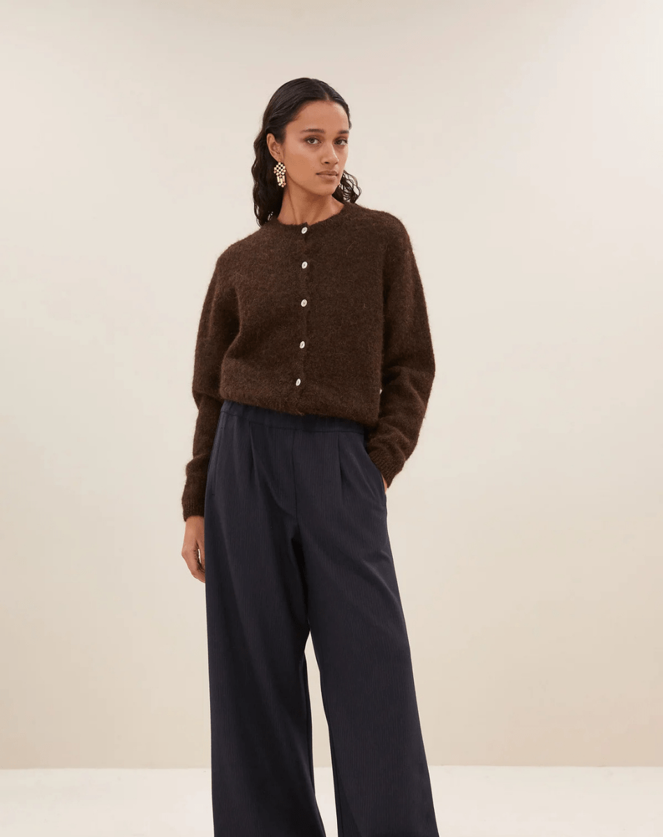 Le cardigan Cleo est un gilet intemporel à la coupe décontractée. Confectionné dans un mélange d’alpaga, il offre douceur et confort au quotidien. Son encolure ronde et sa fermeture à boutons en font une pièce polyvalente, facile à associer à toutes vos tenues.