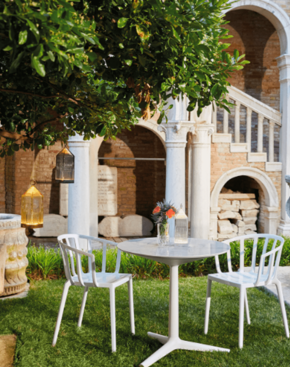 Elégance classique, esprit contemporain : la chaise Venice allie le charme des bistrots vénitiens à des lignes modernes. Conçue pour l’intérieur comme l’extérieur, elle offre confort, style et robustesse en une seule pièce.