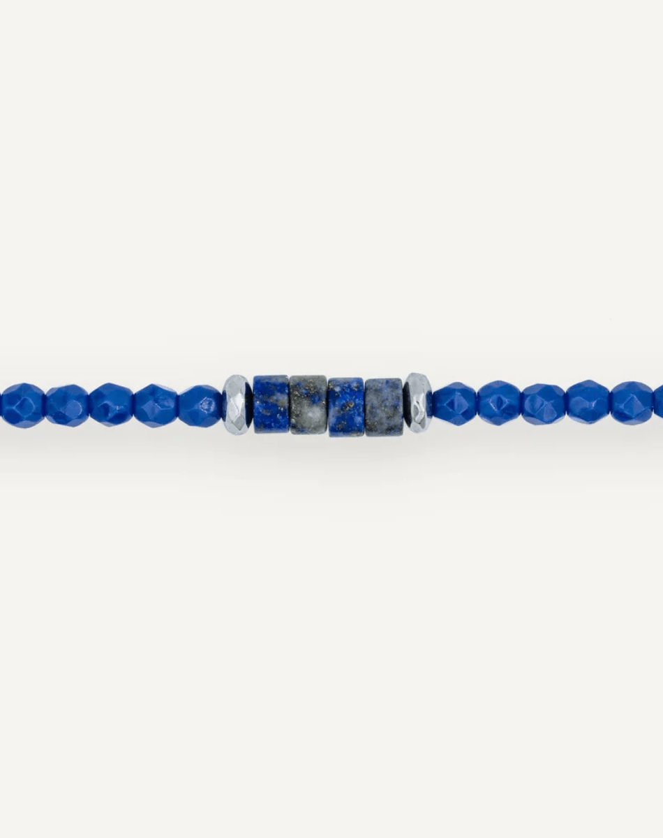 Il est composé de 360 perles de Bohême facettées, sublimées par des Heishi semi-précieux en Lapis Lazuli intégrés en son centre, pour une touche de caractère et de lumière.
