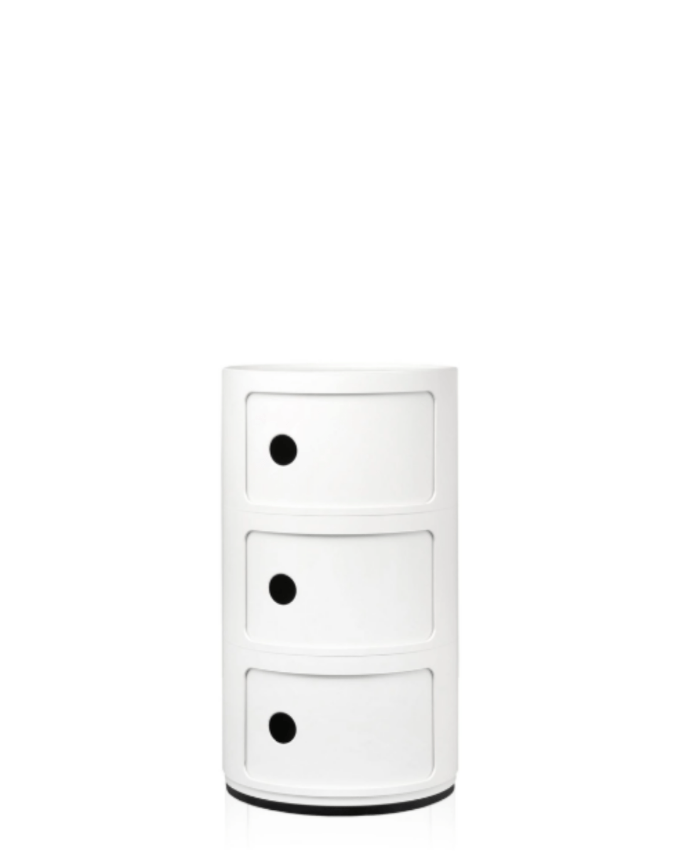 Icône du design italien depuis 1969, le Componibili allie fonctionnalité et élégance. Ce module de rangement cylindrique s’intègre aussi bien dans le salon, la chambre, la salle de bain ou le bureau. Léger et polyvalent, il offre une solution pratique pour organiser vos objets tout en apportant une touche design intemporelle.