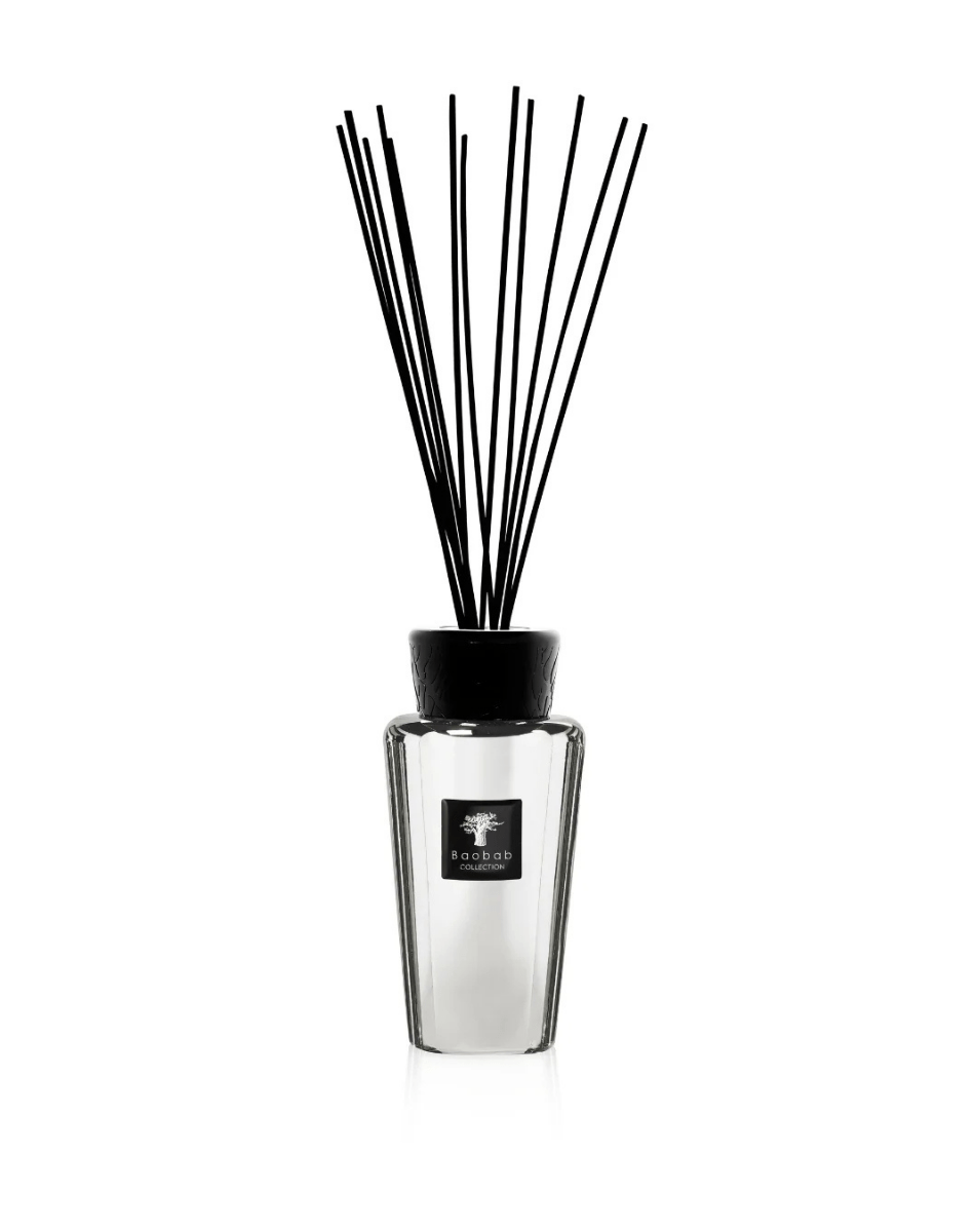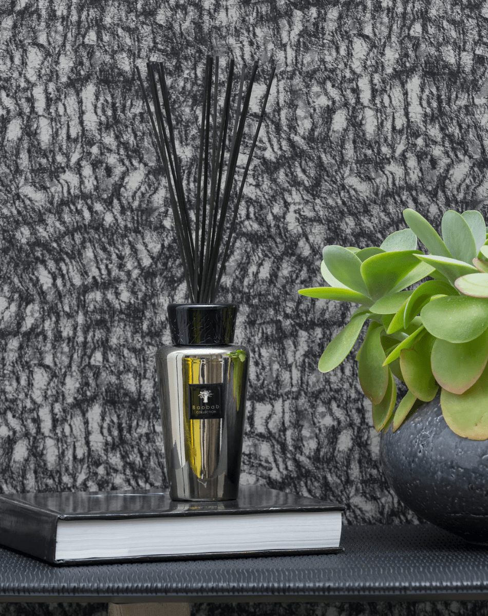 Le diffuseur d’intérieur Platinum se pare d’un flacon délicatement recouvert d’une peinture métallisée, évoquant le métal précieux qui lui donne son nom. Surmonté d’un bouchon en bakélite gravé d’un motif de racines, il se révèle à la fois raffiné et décoratif.