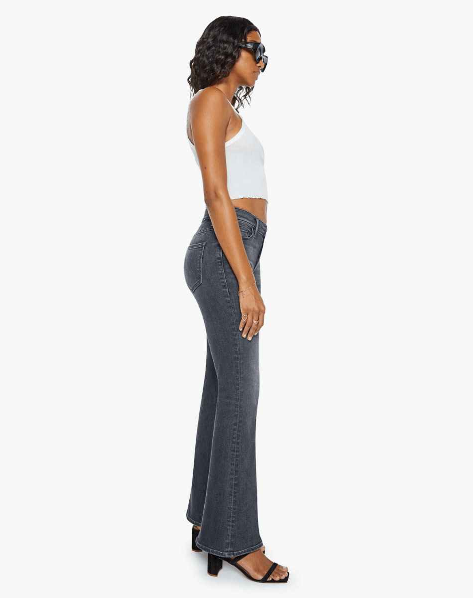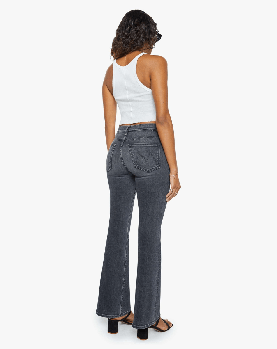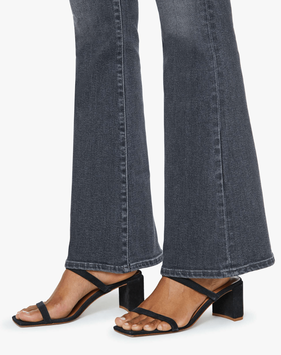 Ce jean évasé iconique affiche une taille mi-haute, une longueur d’entrejambe de 79 cm et un ourlet net pour une finition soignée. Réalisé en denim légèrement stretch, le modèle « Can You Call My Phone? » se distingue par son noir délavé, rehaussé de moustaches discrètes, d’effets de décoloration et de détails ton sur ton.
