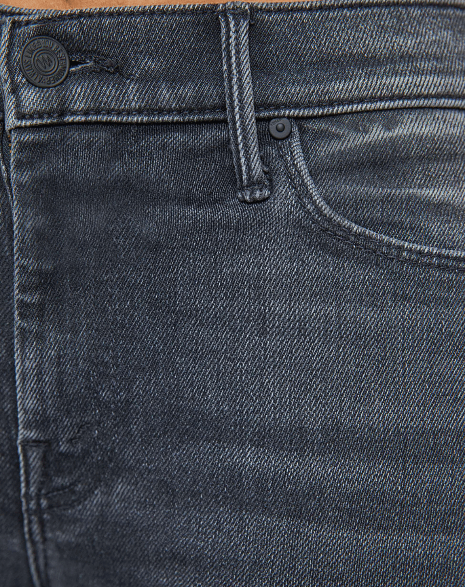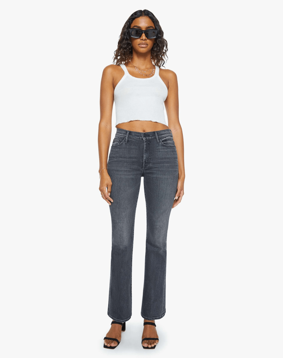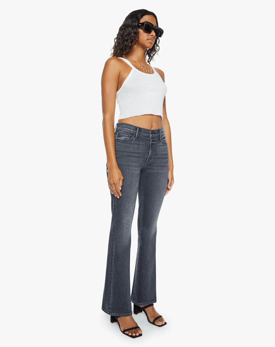 Ce jean évasé iconique affiche une taille mi-haute, une longueur d’entrejambe de 79 cm et un ourlet net pour une finition soignée. Réalisé en denim légèrement stretch, le modèle « Can You Call My Phone? » se distingue par son noir délavé, rehaussé de moustaches discrètes, d’effets de décoloration et de détails ton sur ton.