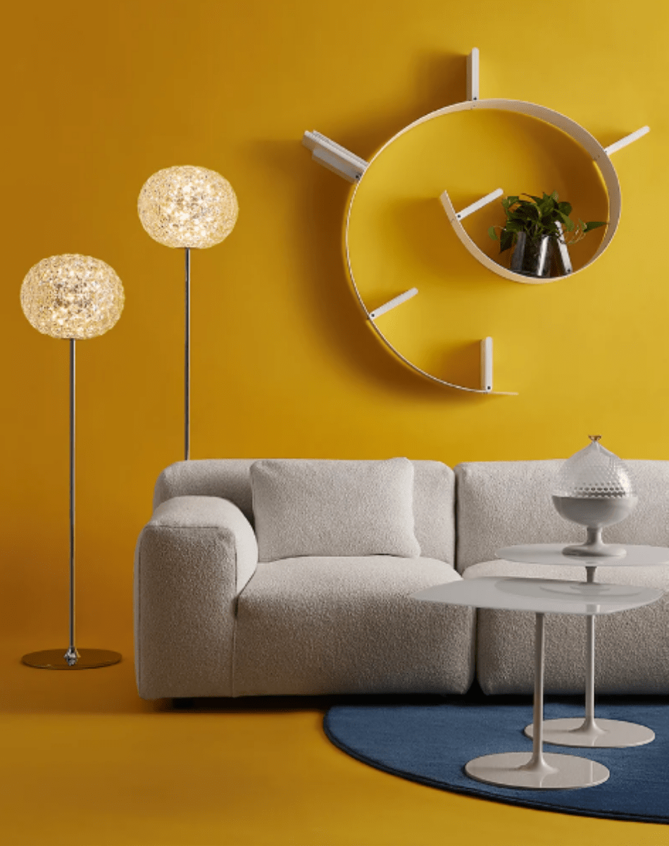 Le lampadaire Planet allie élégance futuriste et poésie lumineuse. Son diffuseur elliptique légèrement ovale, façonné en technopolymère, présente une surface facettée intérieure/extérieure qui joue avec la lumière pour créer des reflets presque célestes. Monté sur une structure fine en acier, il existe en deux hauteurs. Il propose une lumière douce, chaleureuse, ajustable via variateur, idéale pour créer une ambiance raffinée et contemporaine dans tout intérieur.