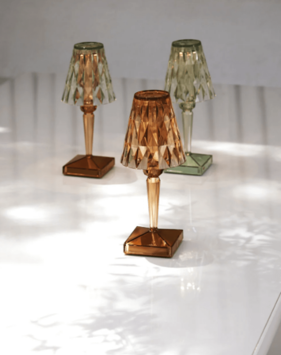 Portable, rechargeable et pleine de charme, la Battery marie design moderne et praticité. Elle diffuse une lumière LED douce, avec une autonomie de 6 à 8 heures selon version. Imperméable, elle convient aussi bien à l’intérieur qu’à l’extérieur, sur une terrasse ou dans un hôtel, tout en gardant une esthétique sculpturale grâce à ses surfaces facettées qui jouent avec la lumière.