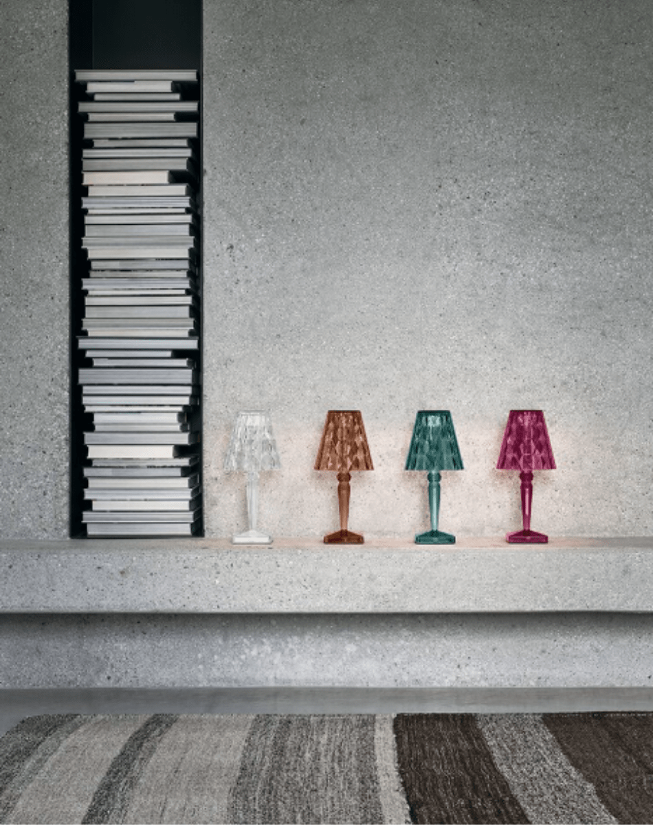 Big Battery est la version ”maxi” de la lampe Battery : imposante, elle est équipée d’une LED intégrée à lumière chaude et elle offre jusqu’à 8 heures d’autonomie en version batterie, tout en étant également disponible en version filaire. Résistante, elle révèle ses surfaces facettées pour des jeux de lumière élégants, à l’intérieur comme à l’extérieur ou dans vos espaces hôteliers.
