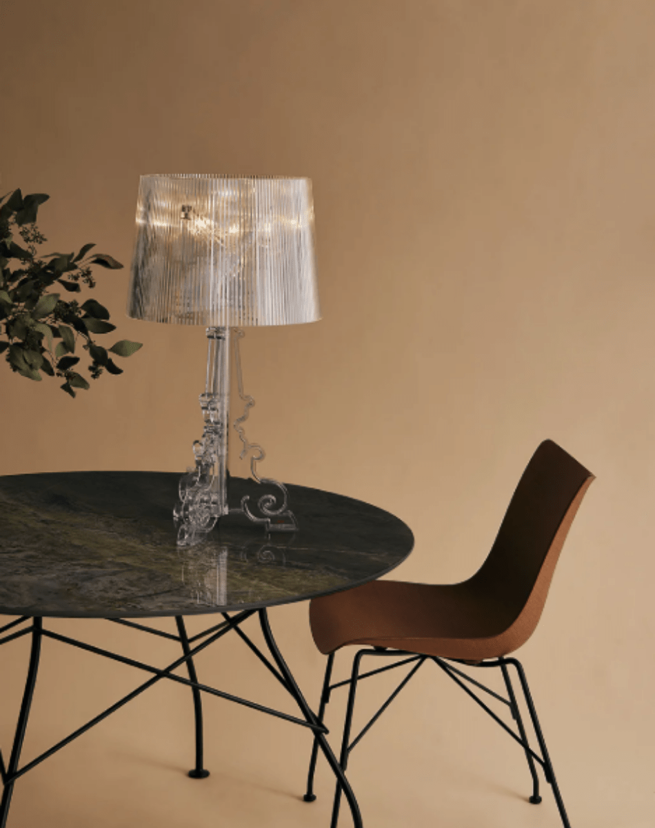 La Bourgie, dessinée par Ferruccio Laviani pour Kartell, est une lampe iconique qui mêle le raffinement baroque à la technicité moderne. Sa base richement décorée à trois étages et son abat-jour plissé créent un jeu de reflets élégant quand la lumière est allumée. Elle offre une hauteur ajustable (68-73-78 cm) selon l’usage, pour sublimer un chevet comme un bout de canapé.
