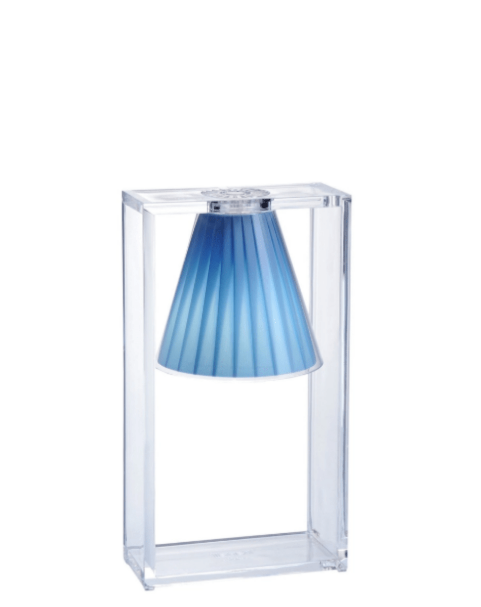 Light-Air surprend par son design “illusionniste” : un cadre rectangulaire léger donne l’impression que l’abat-jour conique flotte dans les airs. Avec son diffuseur sculpté ou plissé et ses finitions, elle diffuse une lumière douce via une ampoule LED incluse. Compacte et aérienne, elle apporte une touche poétique et graphique à tout intérieur.