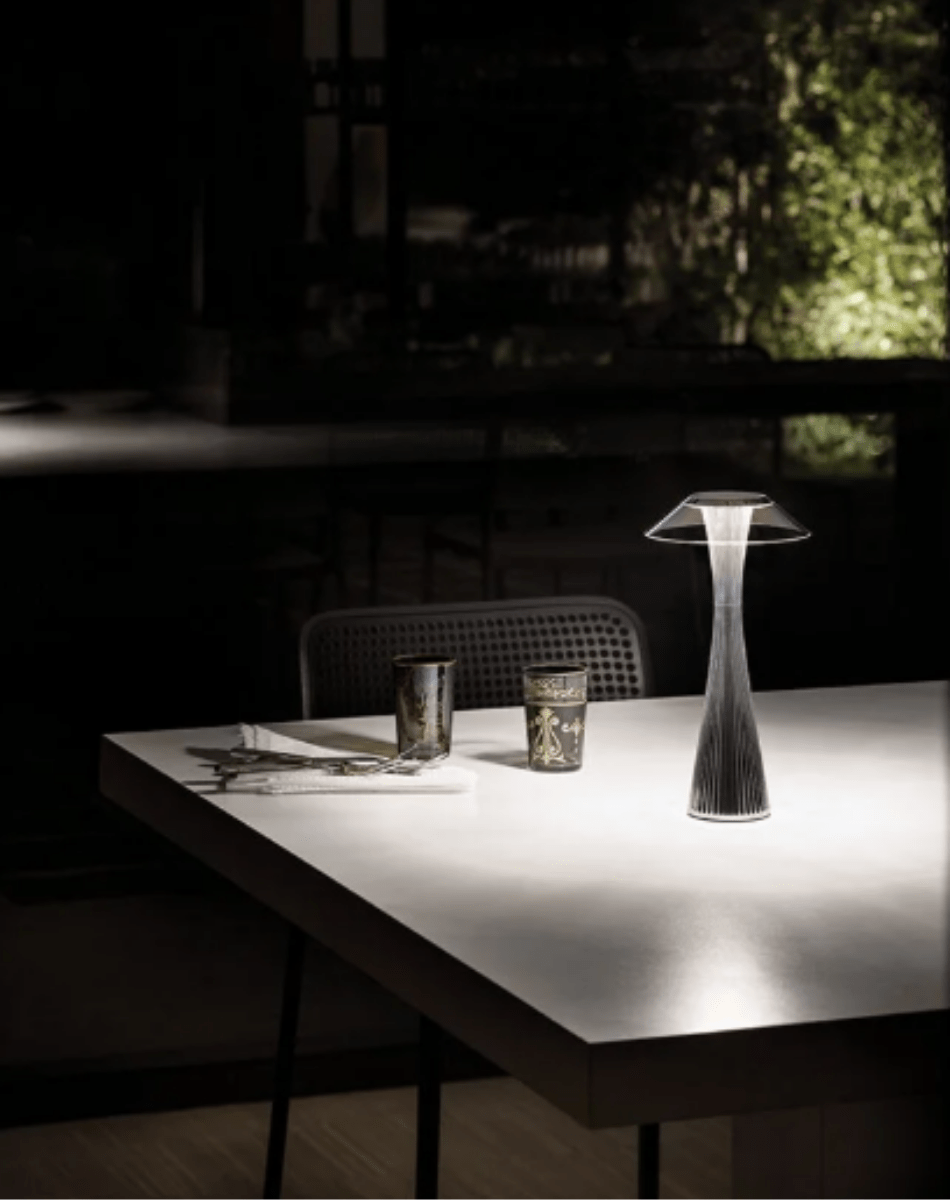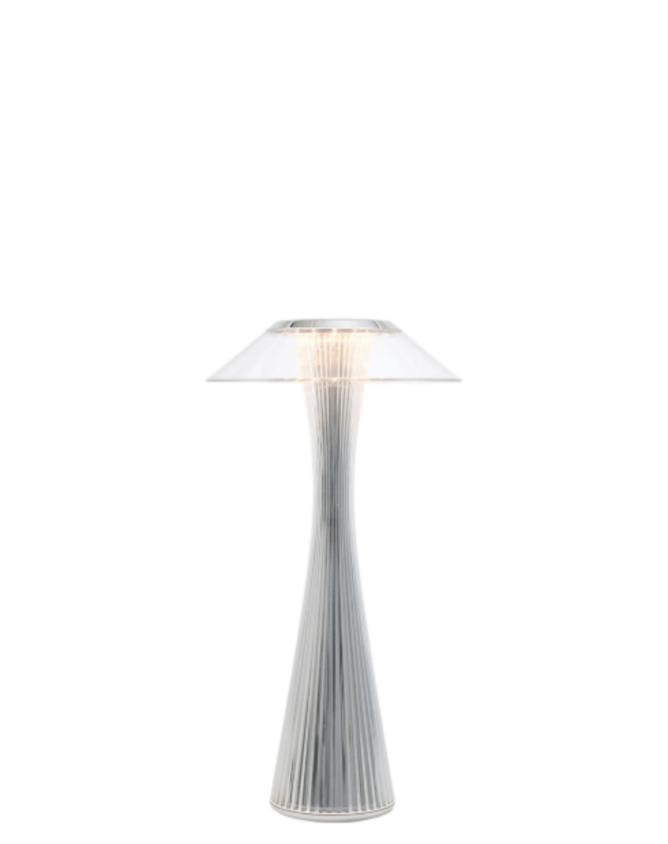 Inspirée par la célèbre Space Needle de Seattle, la lampe Space conçue par Adam Tihany combine élégance futuriste et praticité moderne. Son corps élancé et son socle métallisé abritent une LED intégrée offrant une lumière chaude. Rechargeable, elle offre environ 6,5 heures d’autonomie, avec un interrupteur tactile sur le haut de l’abat-jour, pour une ambiance raffinée sans fil dans vos espaces intérieurs.