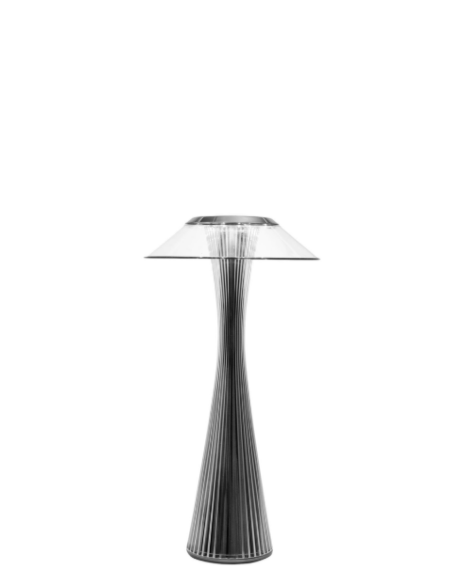 Inspirée par la célèbre Space Needle de Seattle, la lampe Space conçue par Adam Tihany combine élégance futuriste et praticité moderne. Son corps élancé et son socle métallisé abritent une LED intégrée offrant une lumière chaude. Rechargeable, elle offre environ 6,5 heures d’autonomie, avec un interrupteur tactile sur le haut de l’abat-jour, pour une ambiance raffinée sans fil dans vos espaces intérieurs.