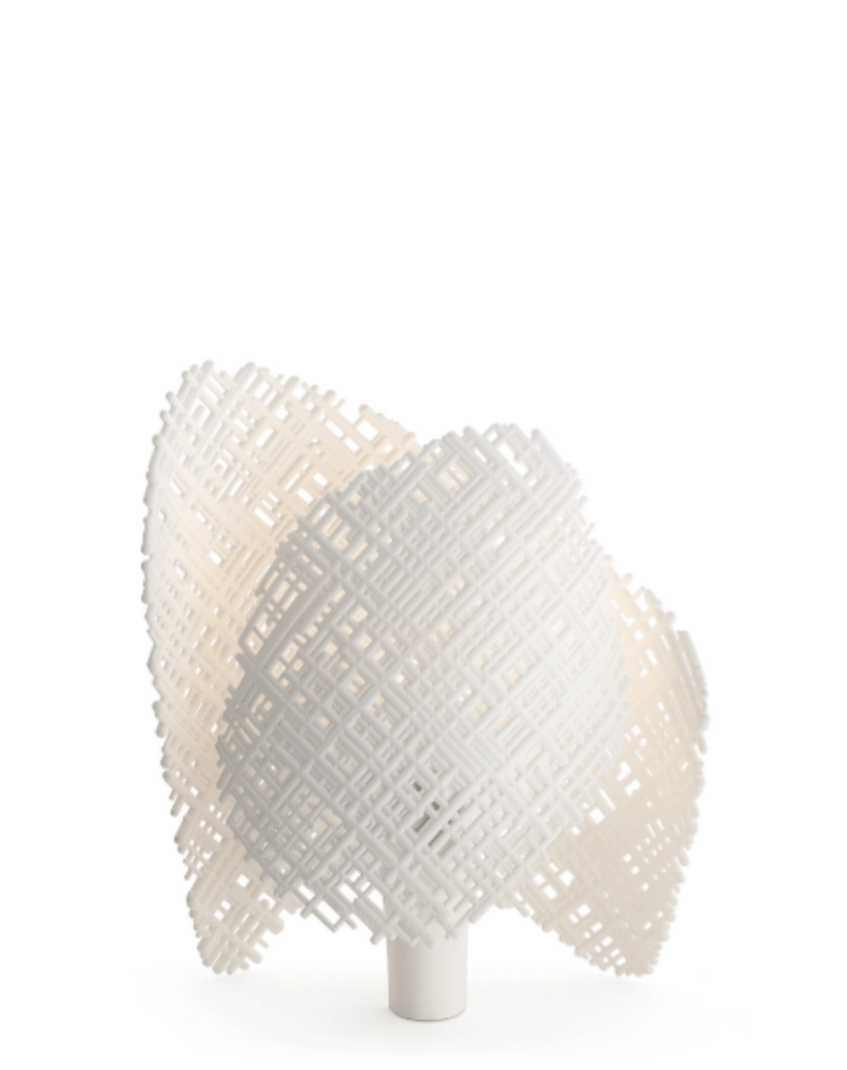La lampe Tea présente une silhouette abstraite évoquant deux mains repliant la lumière entre leurs paumes. Cette forme organique offre une texture irrégulière rappelant la céramique ou la terre cuite. Elle diffuse une lumière douce et chaleureuse, créant des jeux d’ombres et de lumière qui apportent une touche artisanale et poétique à votre intérieur.