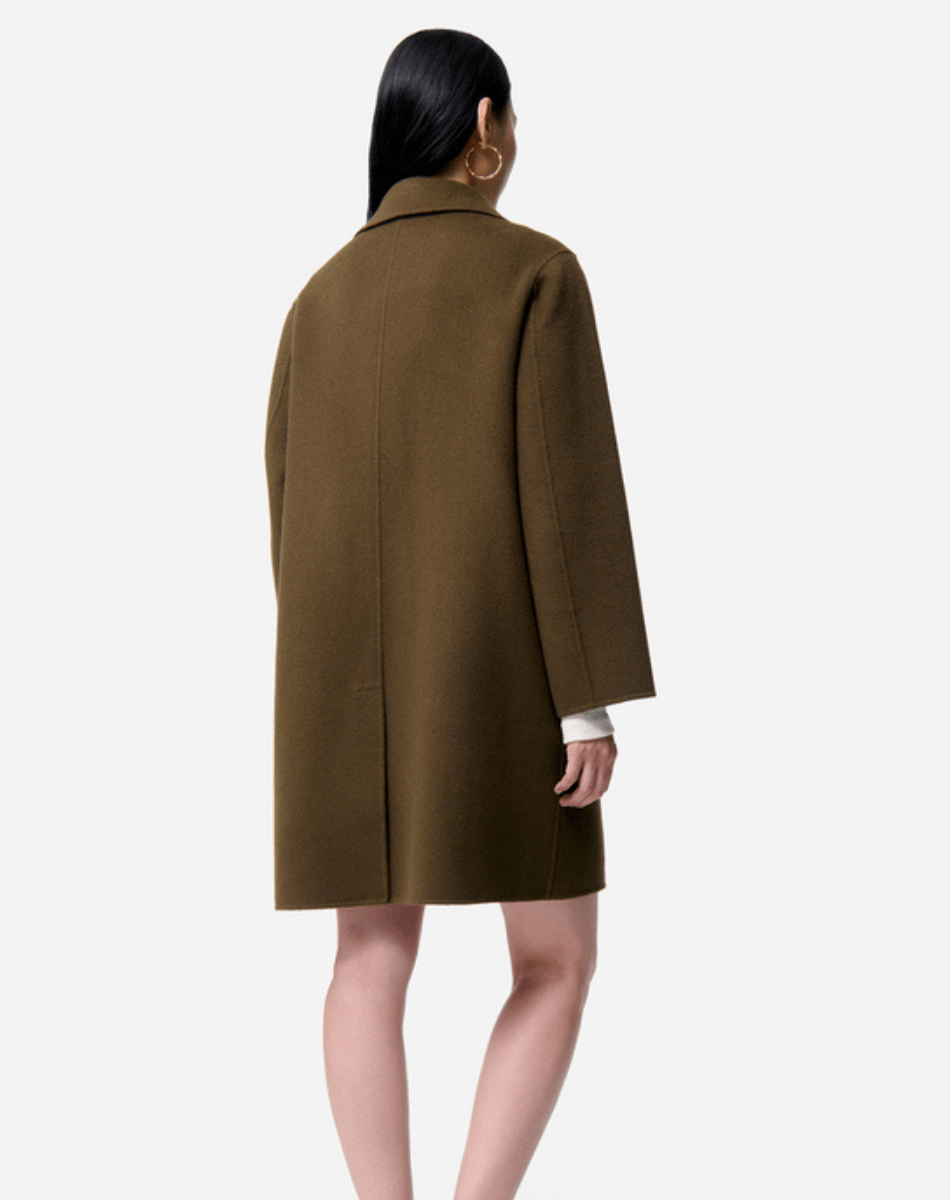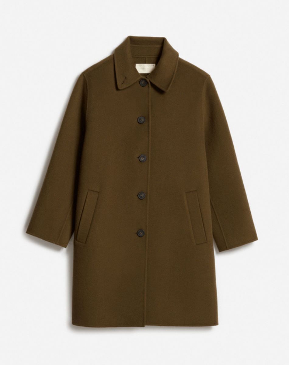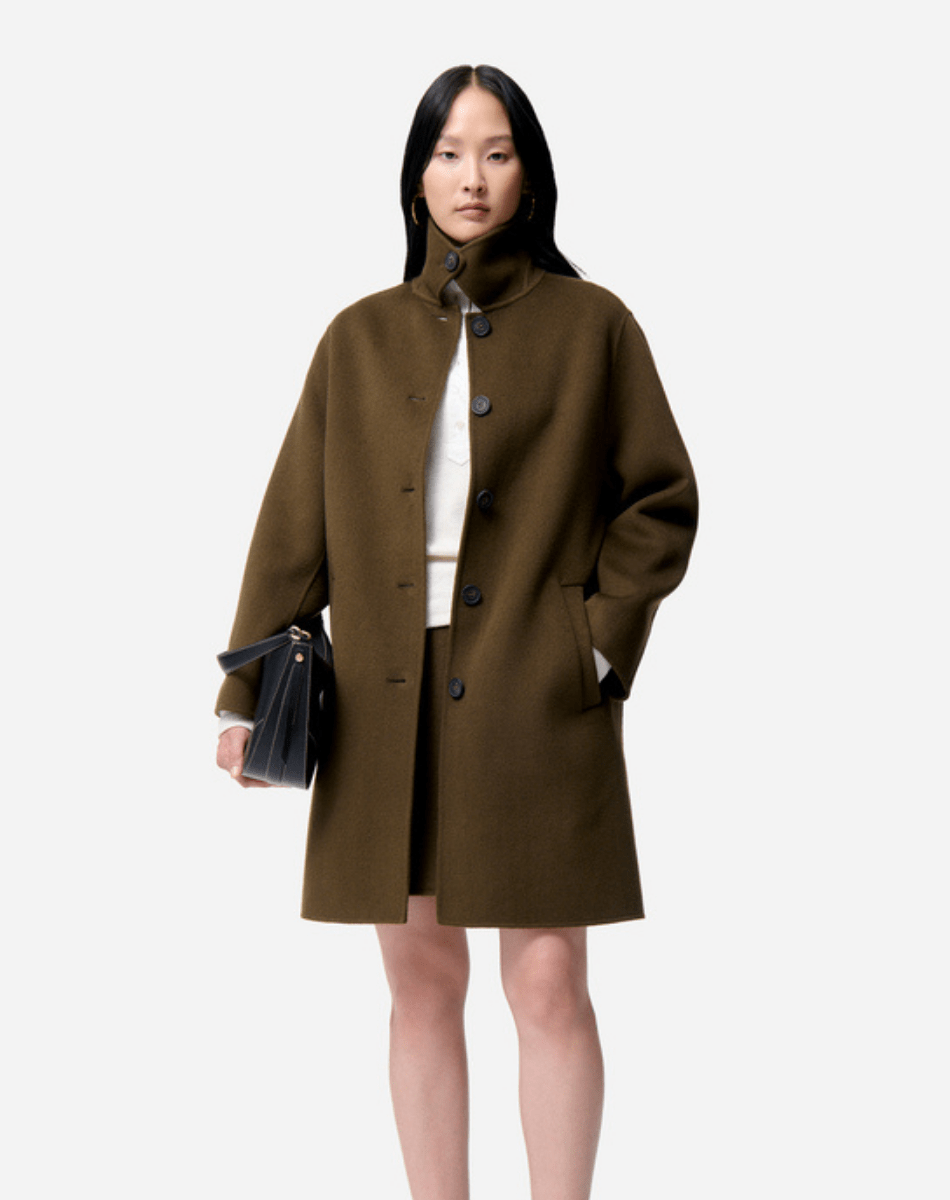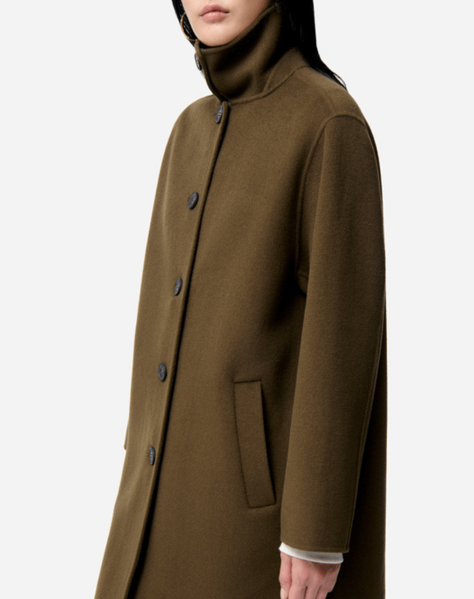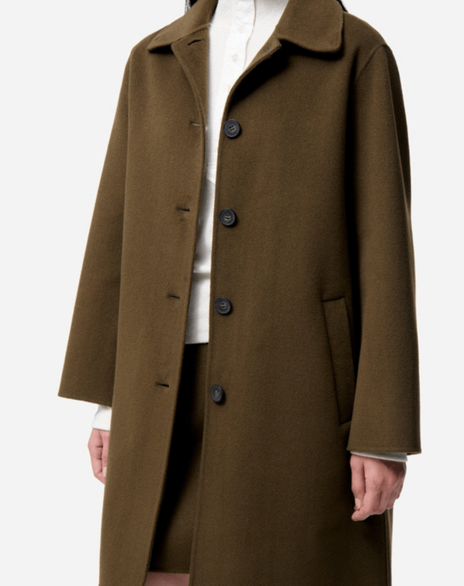 Sobriété et intemporalité définissent le manteau Fabian. Sa coupe droite associée à un col chemise lui apporte une élégance naturelle, parfaite pour le quotidien comme pour les occasions plus habillées.