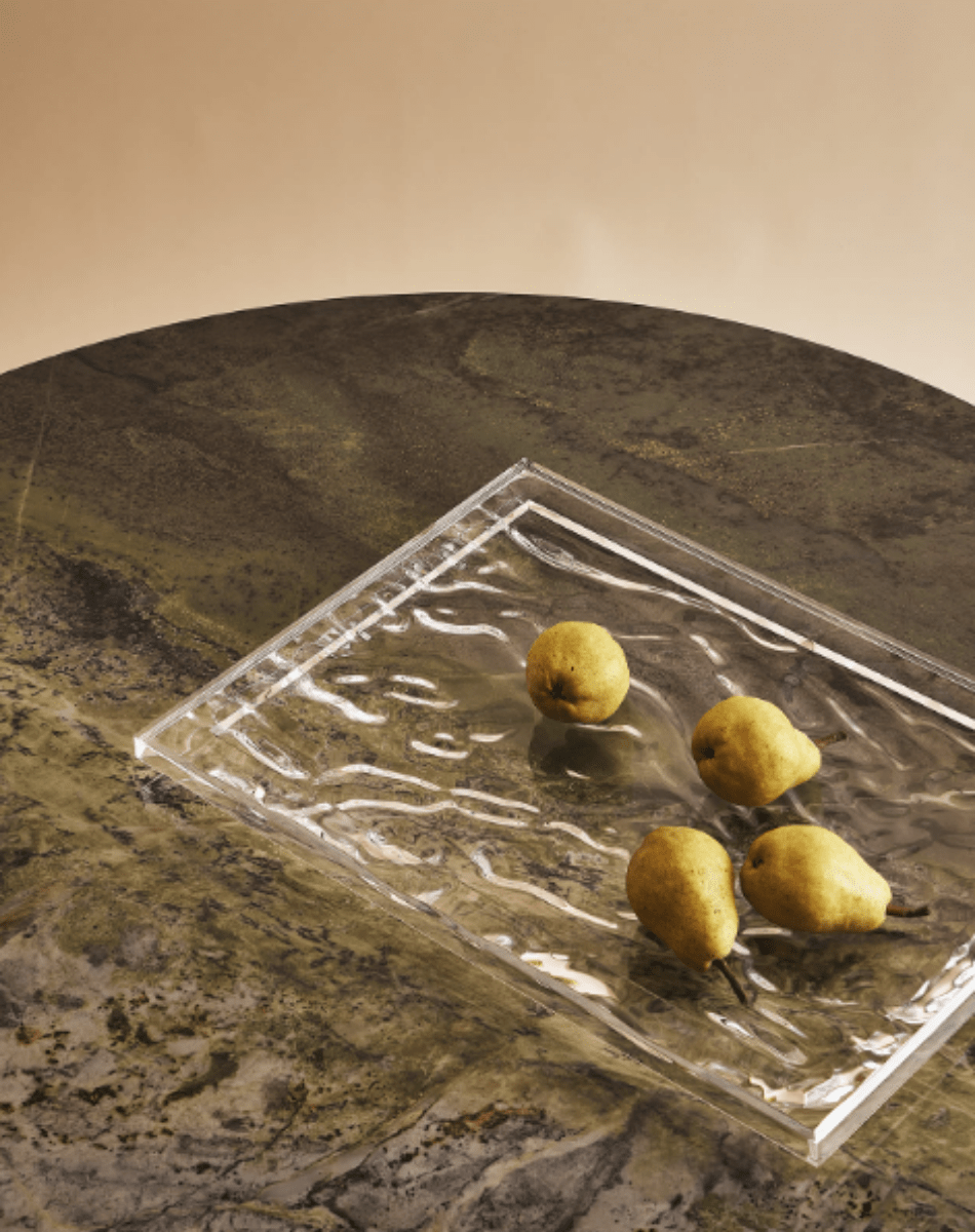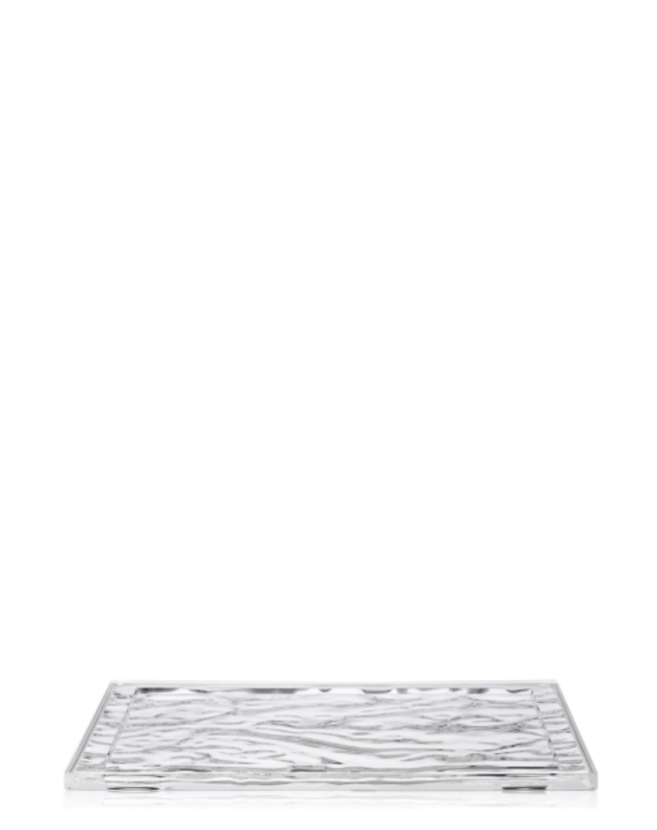 Le plateau Dune de Mario Bellini pour Kartell s’inspire des formes organiques de la nature, telles que les dunes de sable ou les ondulations de l’eau. Il présente une surface sculptée qui capte la lumière et crée des jeux d’ombres et de reflets. Polyvalent, il peut servir de plateau de service ou d’objet décoratif.
