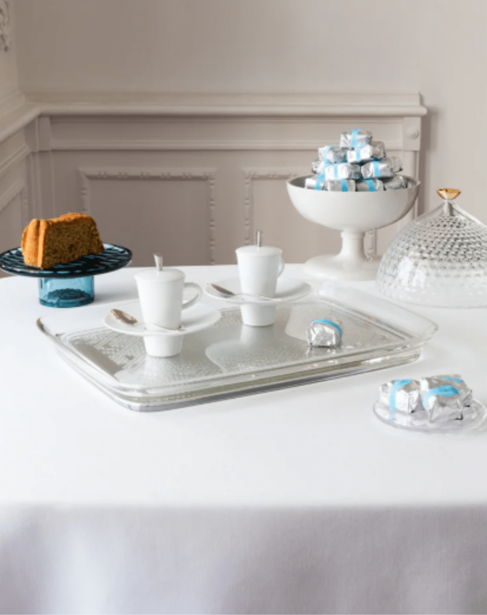 Le plateau Teatime de Philippe Starck pour Kartell revisite le raffinement du crochet traditionnel avec une touche contemporaine. Il présente une surface gravée d’un motif ajouré inspiré de l’artisanat, offrant une texture subtile et une lumière douce. Idéal pour servir ou exposer des objets avec style, il s’intègre harmonieusement dans des ambiances modernes ou classiques.