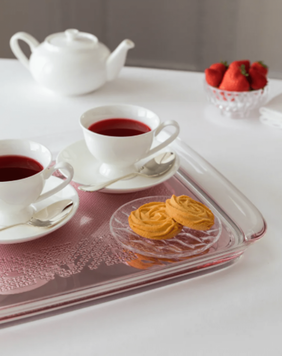Le plateau Teatime de Philippe Starck pour Kartell revisite le raffinement du crochet traditionnel avec une touche contemporaine. Il présente une surface gravée d’un motif ajouré inspiré de l’artisanat, offrant une texture subtile et une lumière douce. Idéal pour servir ou exposer des objets avec style, il s’intègre harmonieusement dans des ambiances modernes ou classiques.