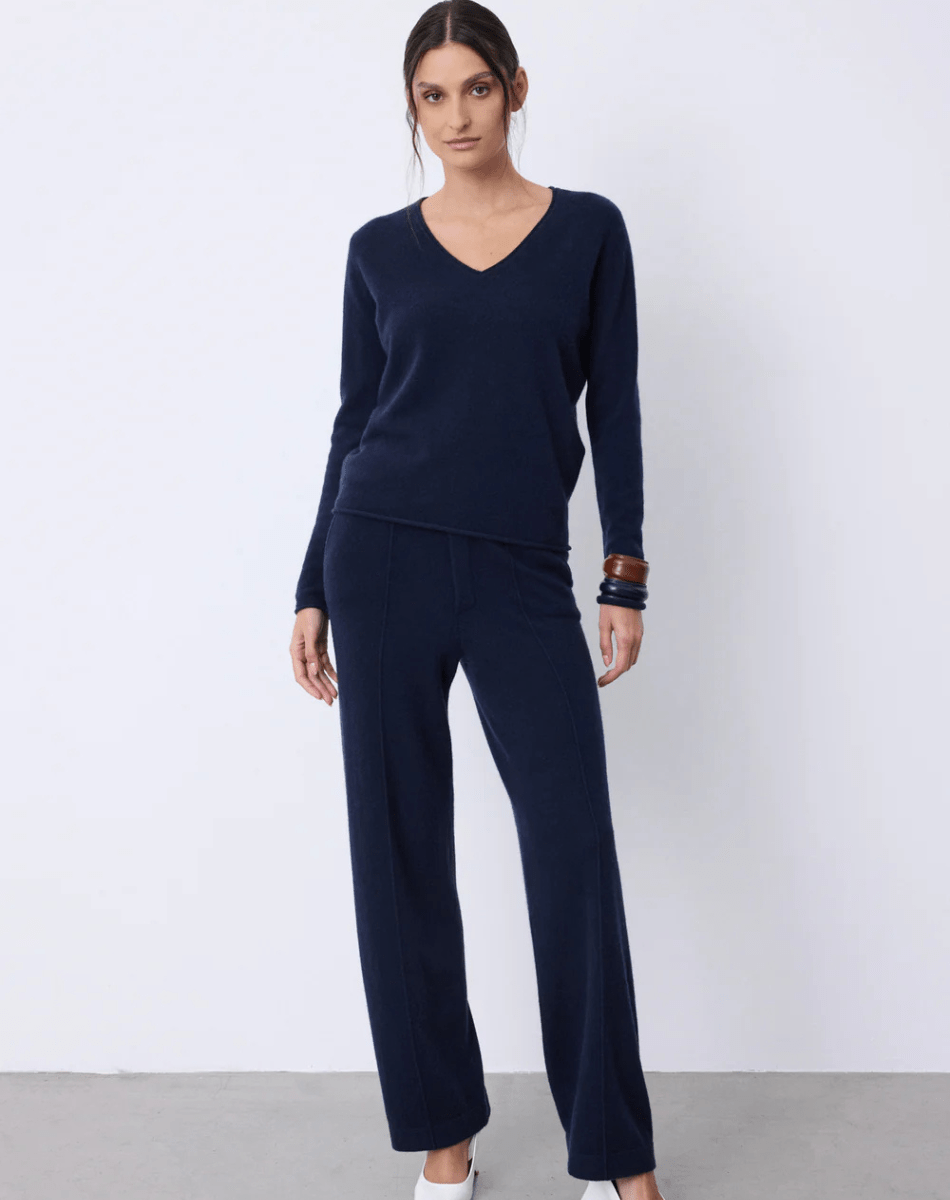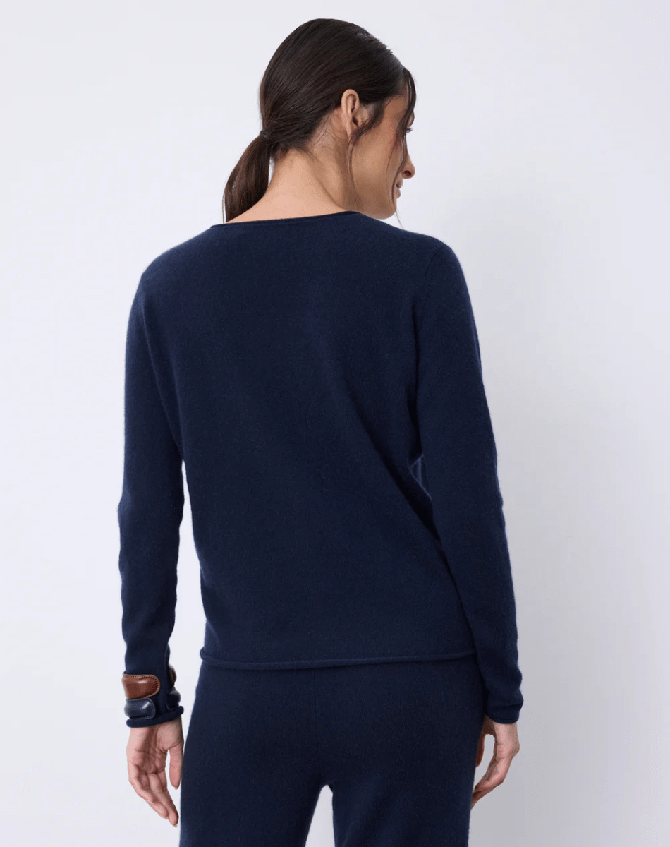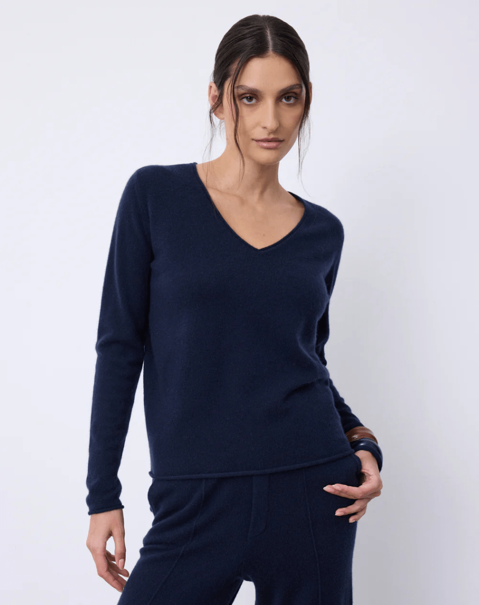 Le pull Aspen combine un tricot luxueux 100 % cachemire deux fils avec une coupe droite raffinée. Il présente un col en V classique, des manches longues et des finitions roulottées pour un rendu sobre et élégant. Idéal pour une tenue chic ou casual, il allie douceur, légèreté et style intemporel.