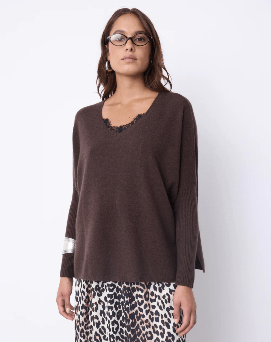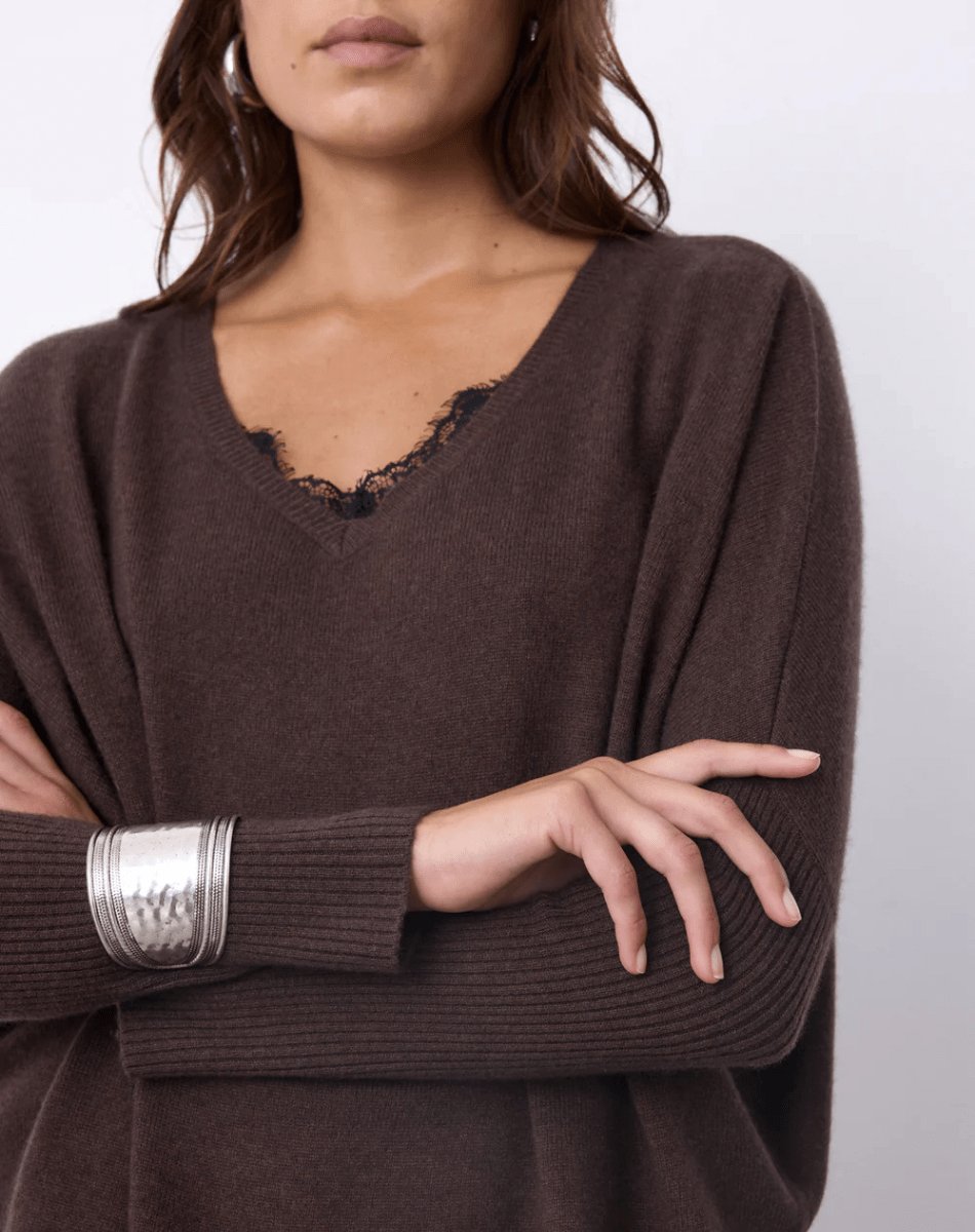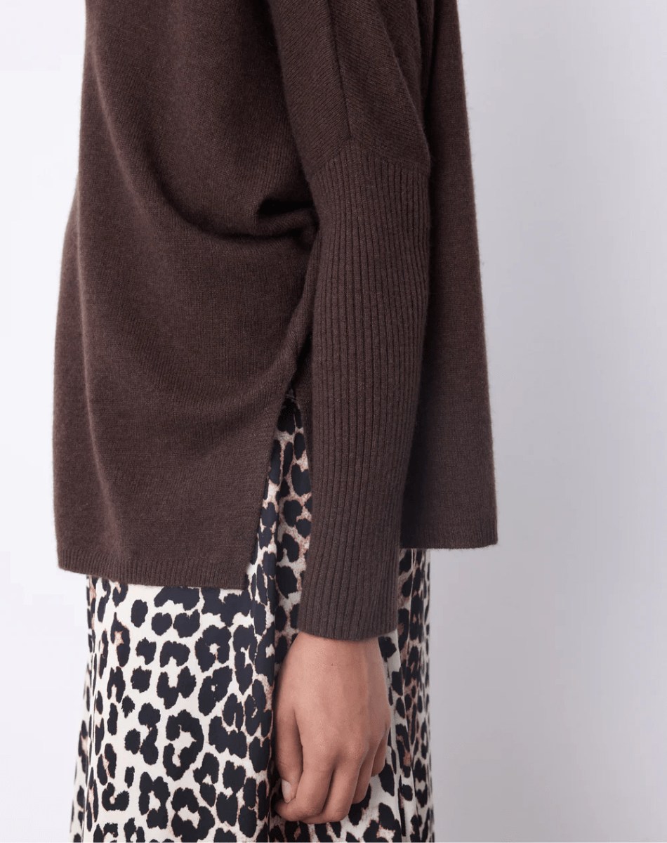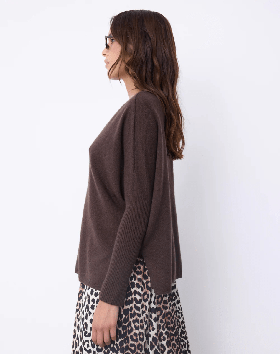 Le pull Faustine est un poncho en cachemire, conçu pour allier élégance et confort. Il arbore un col V, des manches longues resserrées à la base, ainsi que des finitions en côtes accompagnées de fentes latérales. Sa coupe oversize et sa base droite offrent un tombé ample, idéal pour toutes les morphologies.