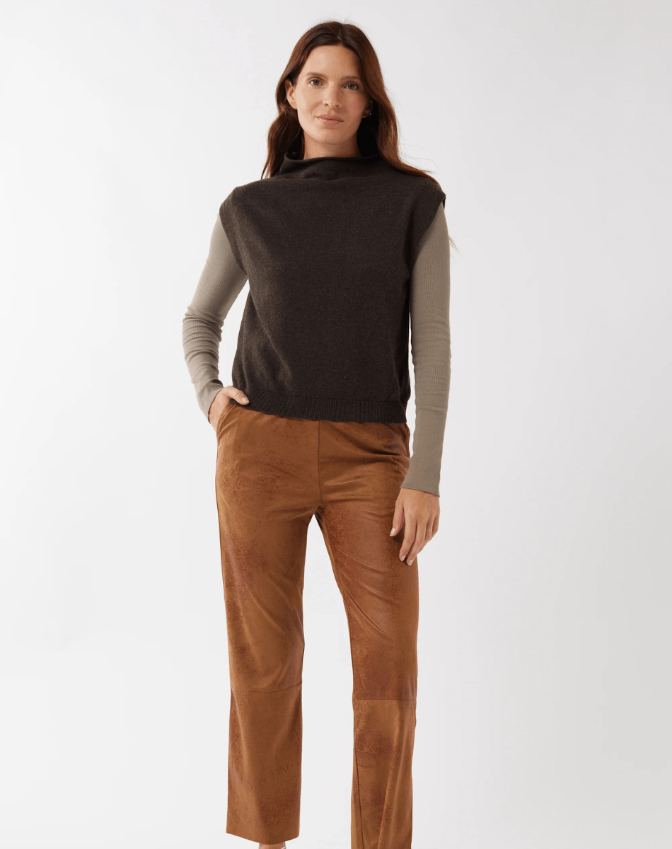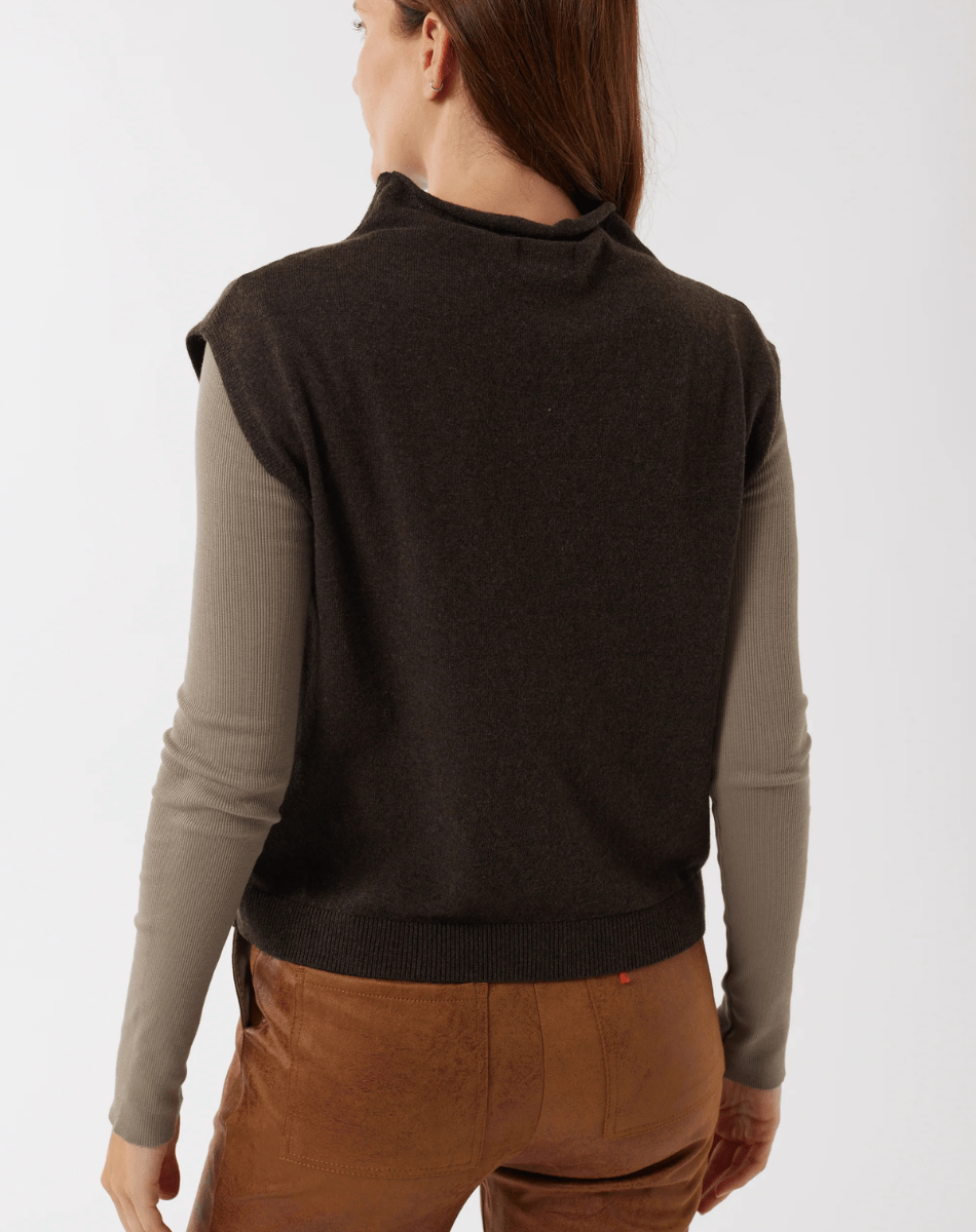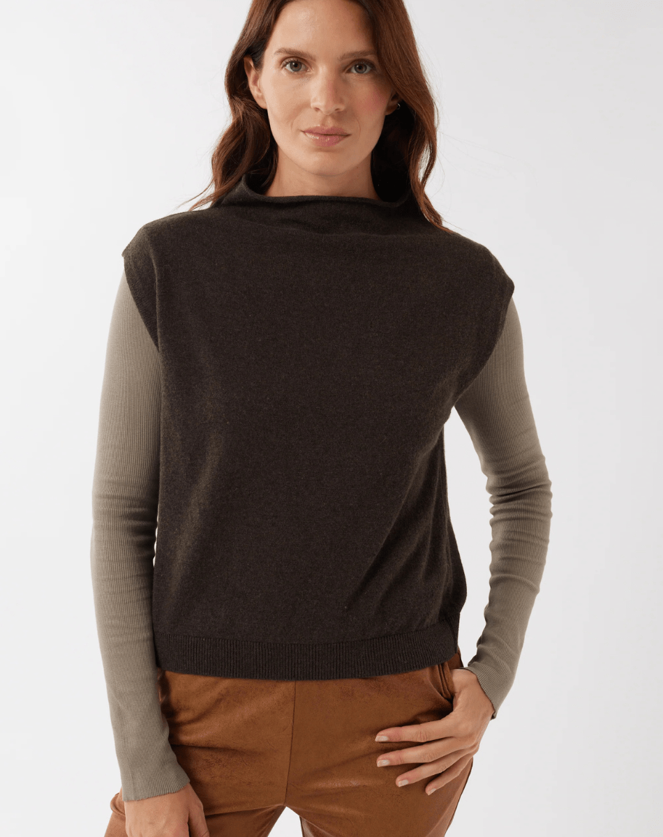 Le pull sans manches Olympe séduit par son design épuré et efficace. Son col cheminée et sa coupe ajustée mettent en valeur la silhouette tout en assurant un confort optimal. Idéal pour des superpositions modernes, à porter du matin au soir.