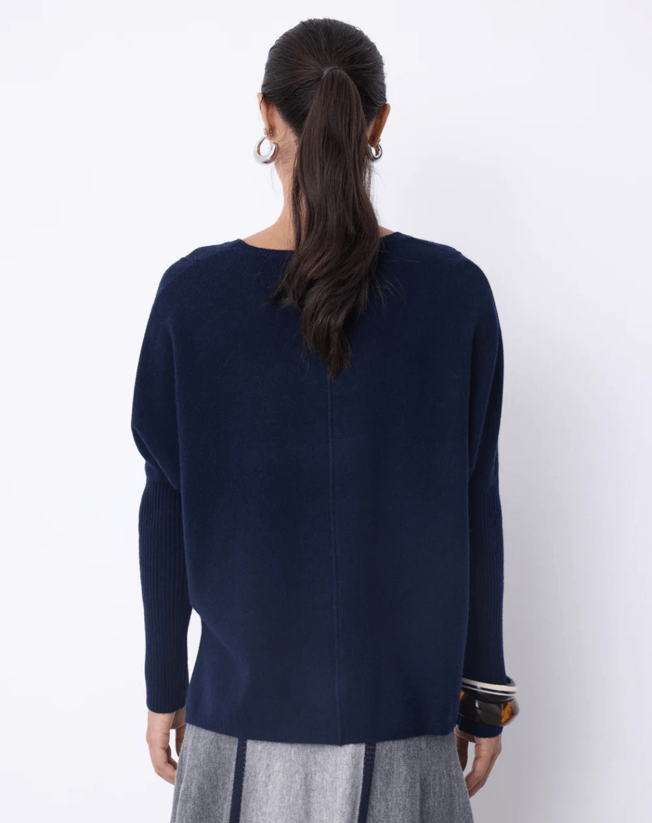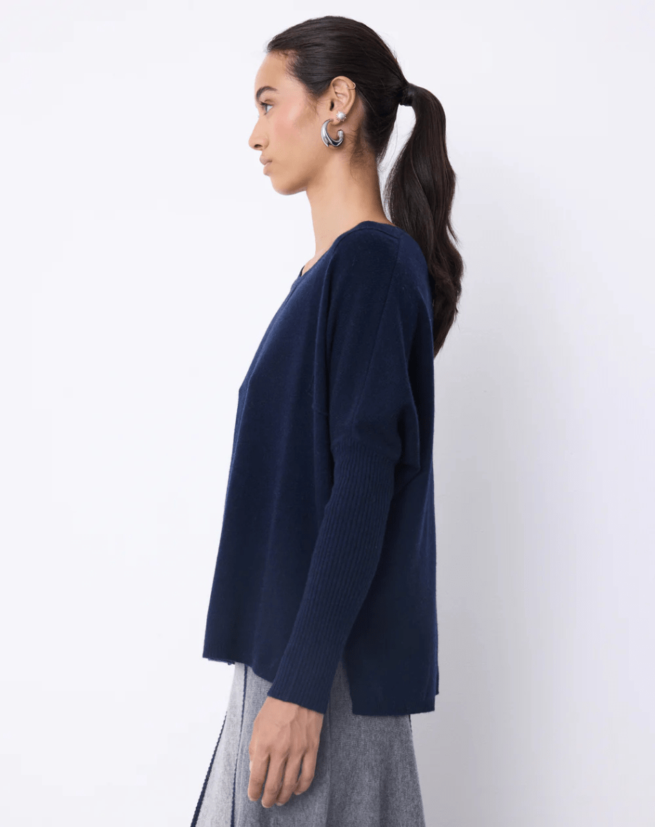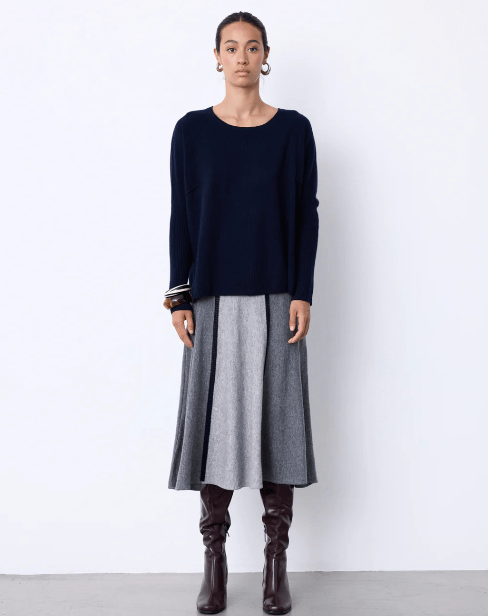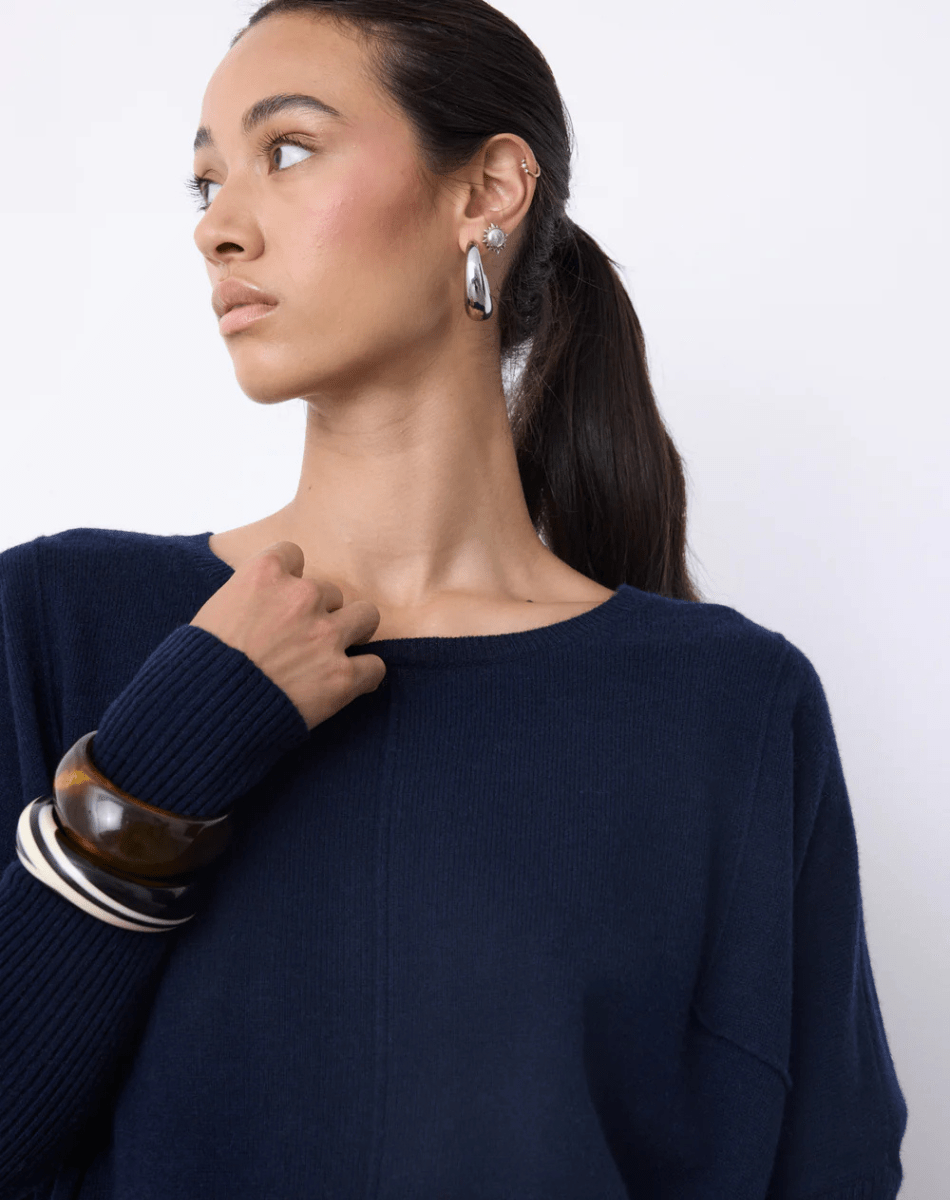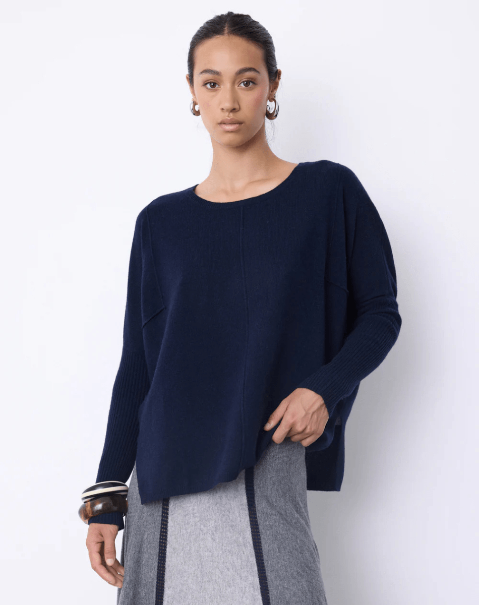 Le pull poncho Bourna, confectionné en cachemire doux et raffiné, séduit par sa coupe ample et fluide. Son col rond et ses manches longues en font une pièce cosy et élégante, idéale pour un style à la fois décontracté et sophistiqué.