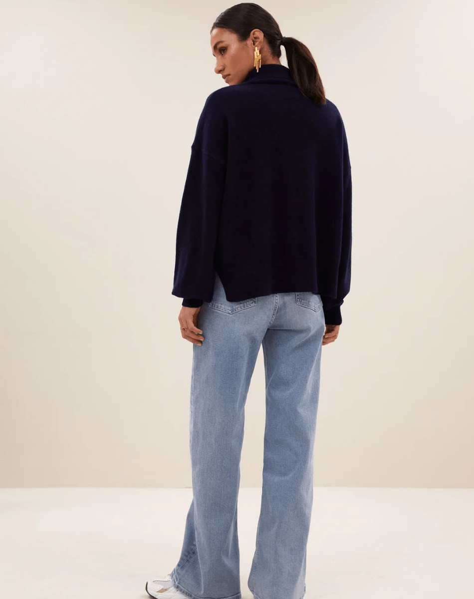 Le pull Sammie présente une coupe droite et confortable. Son col montant et ses emmanchures tombantes lui confèrent une allure moderne, tandis que les finitions en maille côtelée et les fentes latérales discrètes ajoutent une touche de style au quotidien.