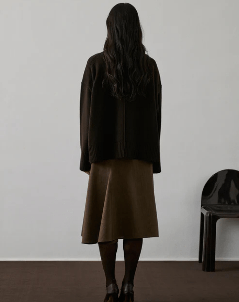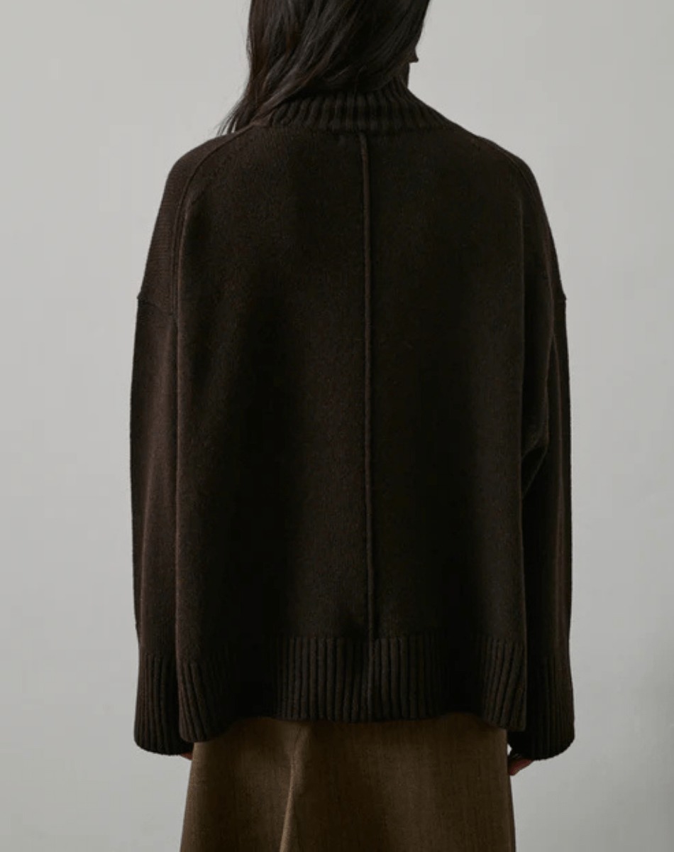 Le pull William se distingue par sa coupe droite et ample, offrant une silhouette moderne et décontractée. Confectionné en laine mérinos, il assure une chaleur douce et un confort exceptionnel, tout en étant léger et agréable à porter. Ses manches longues et son col montant ajoutent une touche de sophistication, tandis que les détails de tricotage au dos apportent une dimension texturée et un caractère unique à ce modèle classique.