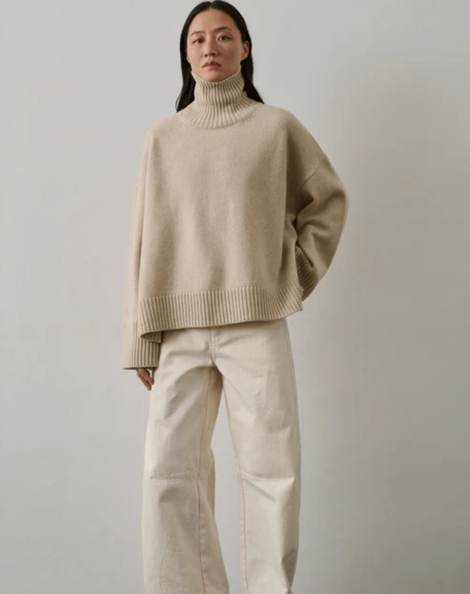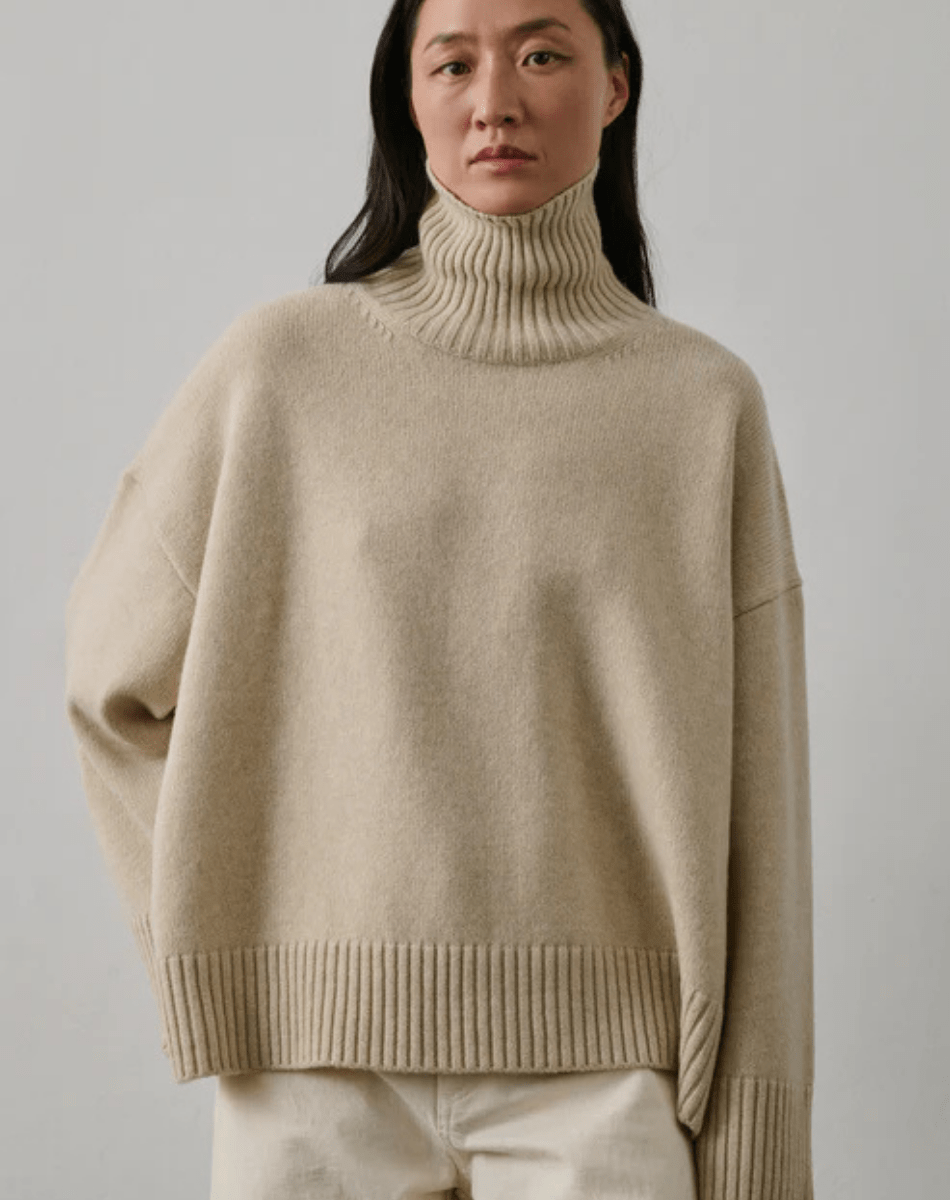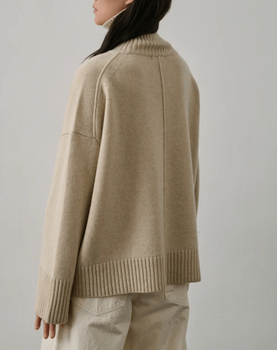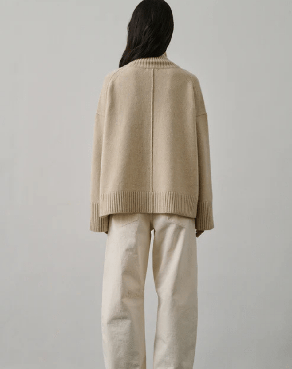 Le pull William se distingue par sa coupe droite et ample, offrant une silhouette moderne et décontractée. Confectionné en laine mérinos, il assure une chaleur douce et un confort exceptionnel, tout en étant léger et agréable à porter. Ses manches longues et son col montant ajoutent une touche de sophistication, tandis que les détails de tricotage au dos apportent une dimension texturée et un caractère unique à ce modèle classique.