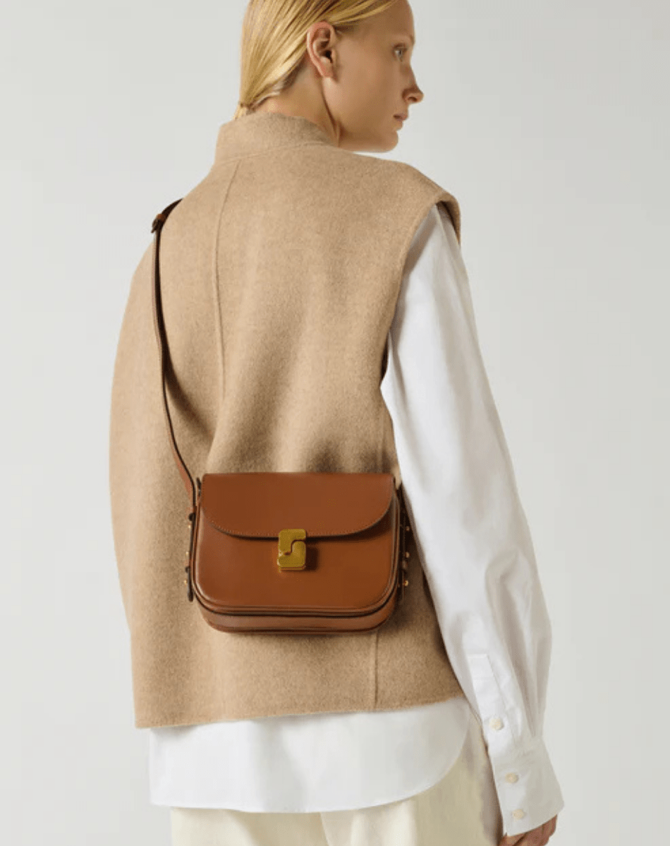 Le sac Bellissima Mini est un modèle iconique en cuir de veau. Il présente une silhouette structurée avec un rabat orné du fermoir monogramme « S » doré, une bandoulière ajustable pour un porté épaule ou croisé, et une doublure en toile de coton. Ses dimensions compactes et ses trois compartiments intérieurs offrent une grande capacité de rangement pour vos essentiels.