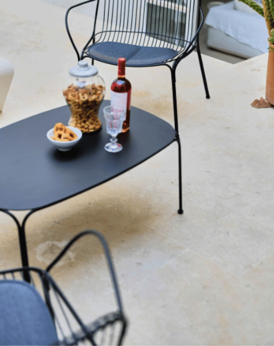 La table basse Hiray séduit par ses lignes graphiques et sa structure en acier. Idéale pour accompagner vos espaces extérieurs avec élégance et modernité, elle complète à merveille la collection du même nom.