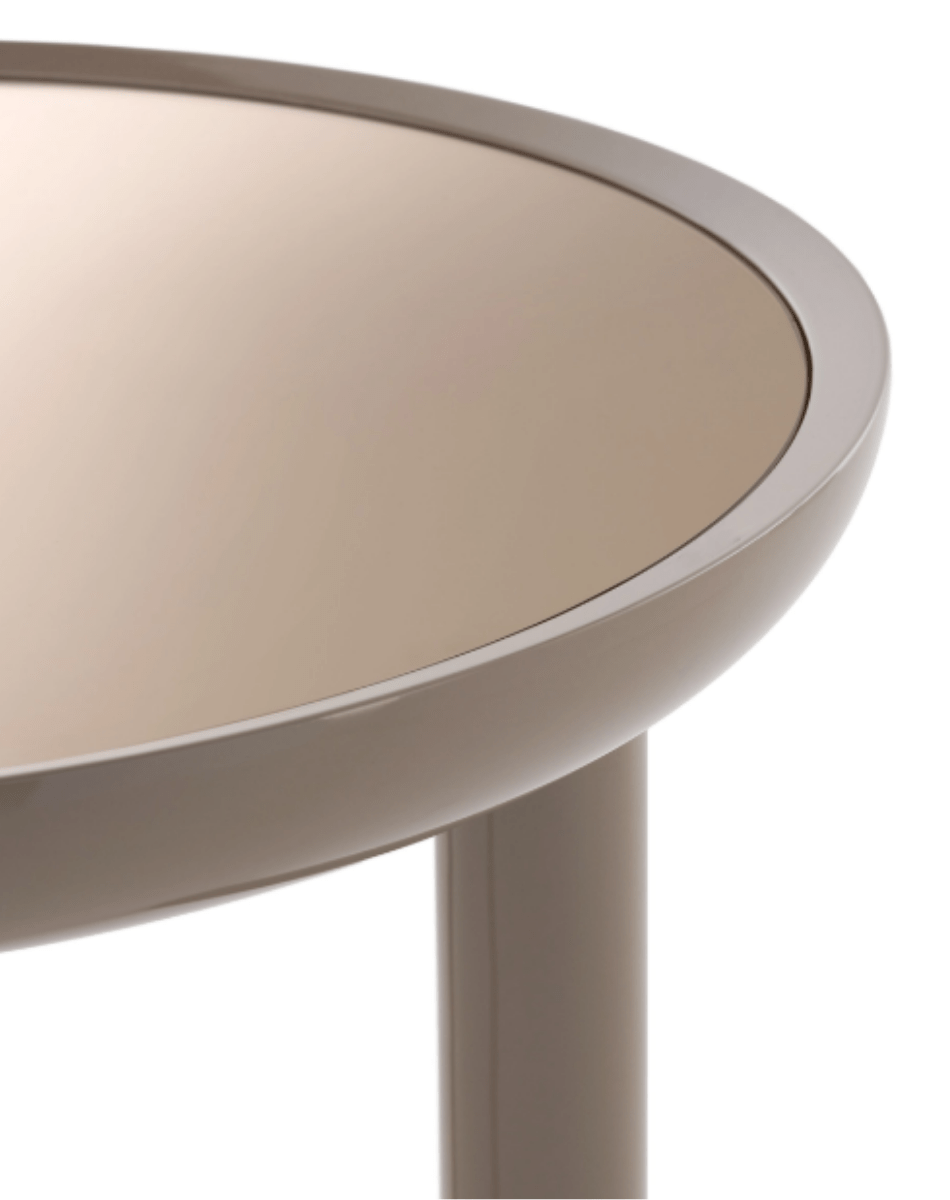 Table d’appoint, la K-TOP se distingue par ses généreuses proportions, son plateau à rebord surélevé et ses finitions sophistiquées.