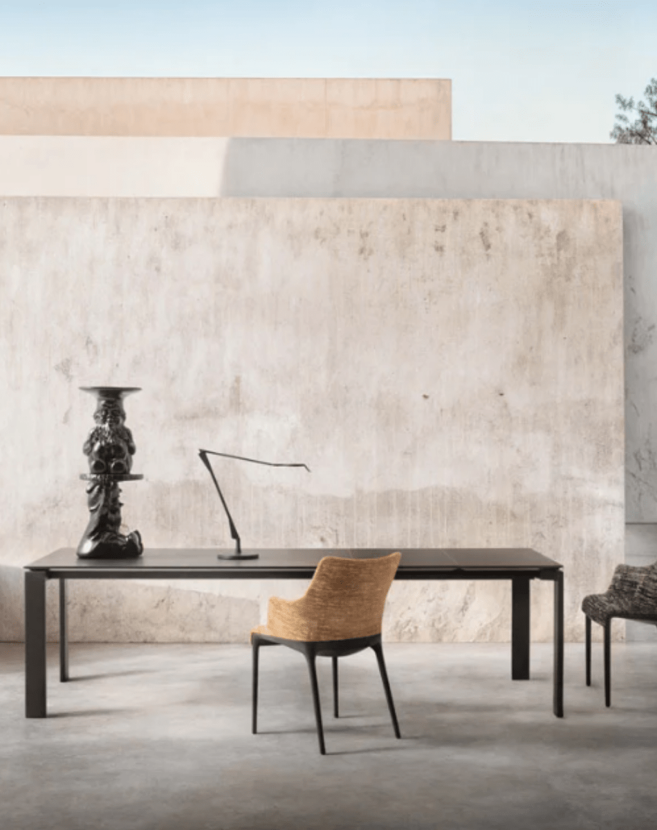 Une table extensible au design géométrique raffiné qui combine des pieds en acier à un plateau stratifié pour un usage quotidien durable. Grâce à son système astucieux, elle passe de 160 cm à 260cm, s’adaptant parfaitement à vos besoins.