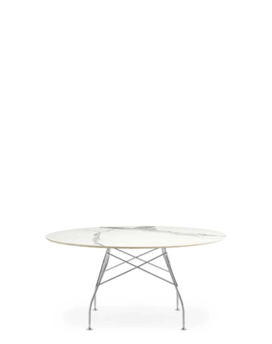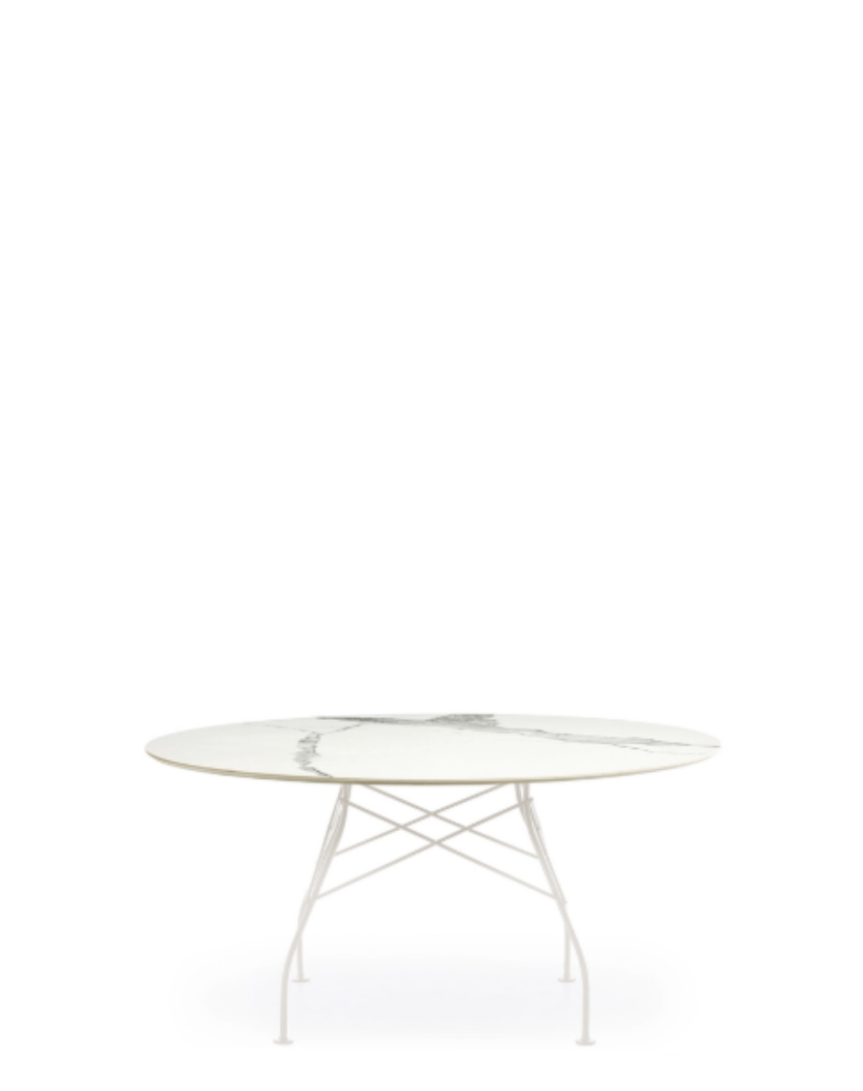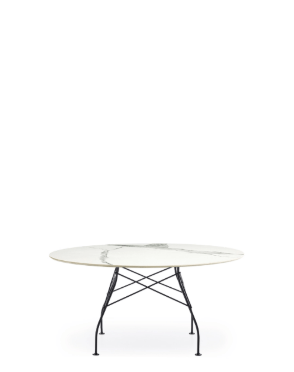 Une table d’exception, associant un plateau en grès effet marbre à une structure légère en acier dotée d’un élégant motif en croix, garantissant stabilité et raffinement.