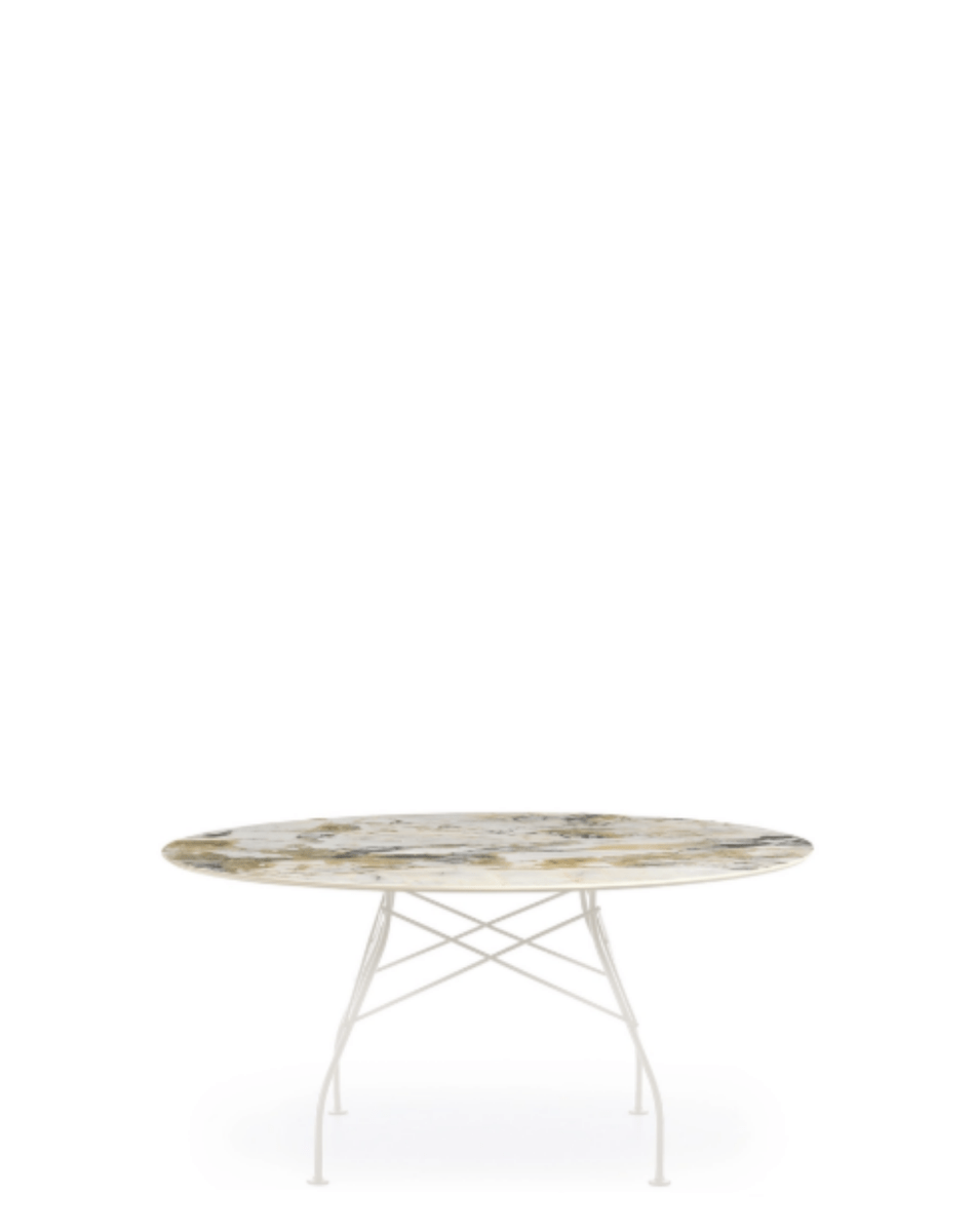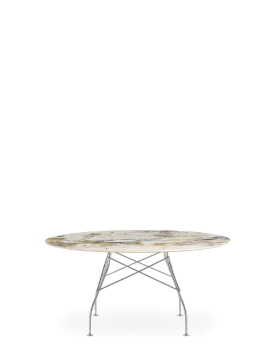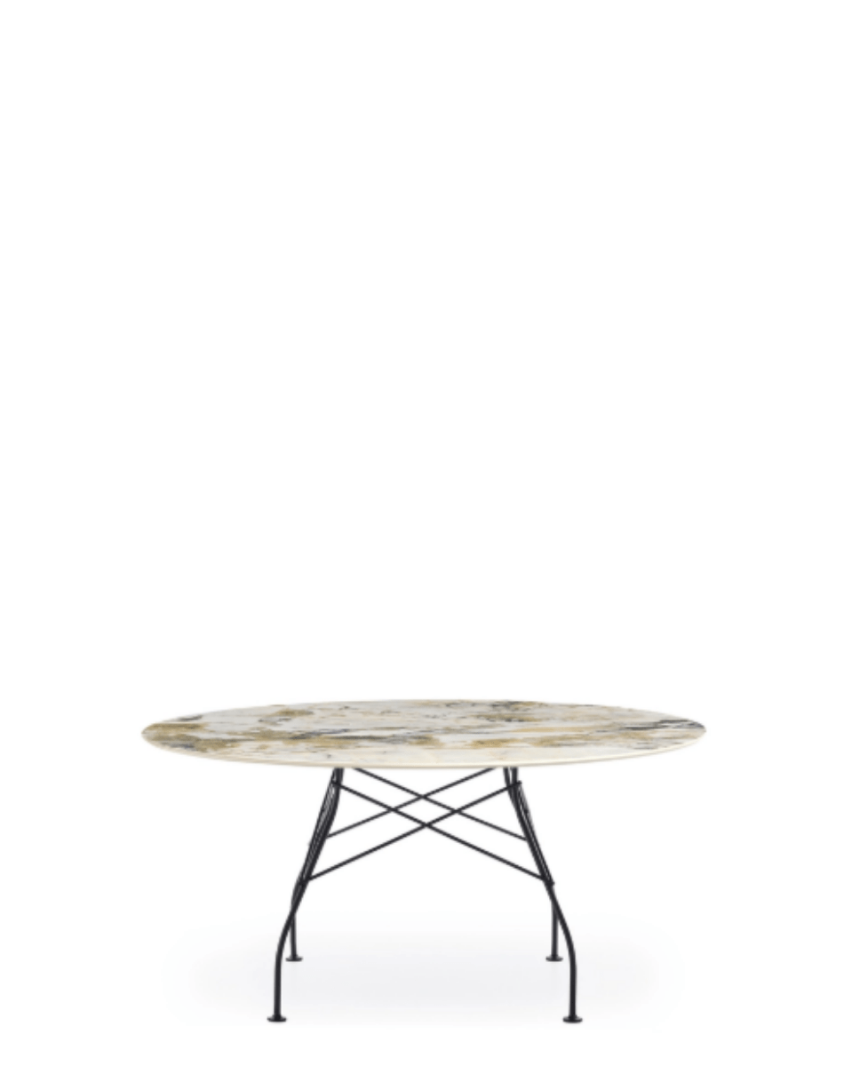 Une table d’exception, associant un plateau en grès effet marbre à une structure légère en acier dotée d’un élégant motif en croix, garantissant stabilité et raffinement.