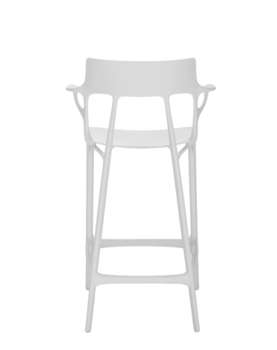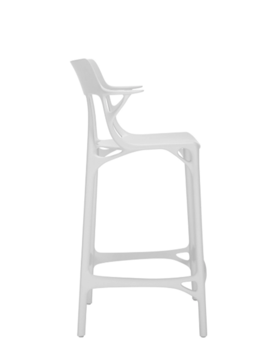 Fruit de la collaboration entre Philippe Starck et l’intelligence artificielle, le tabouret A.I. Stool allie design éthique, confort et légèreté dans une silhouette épurée.