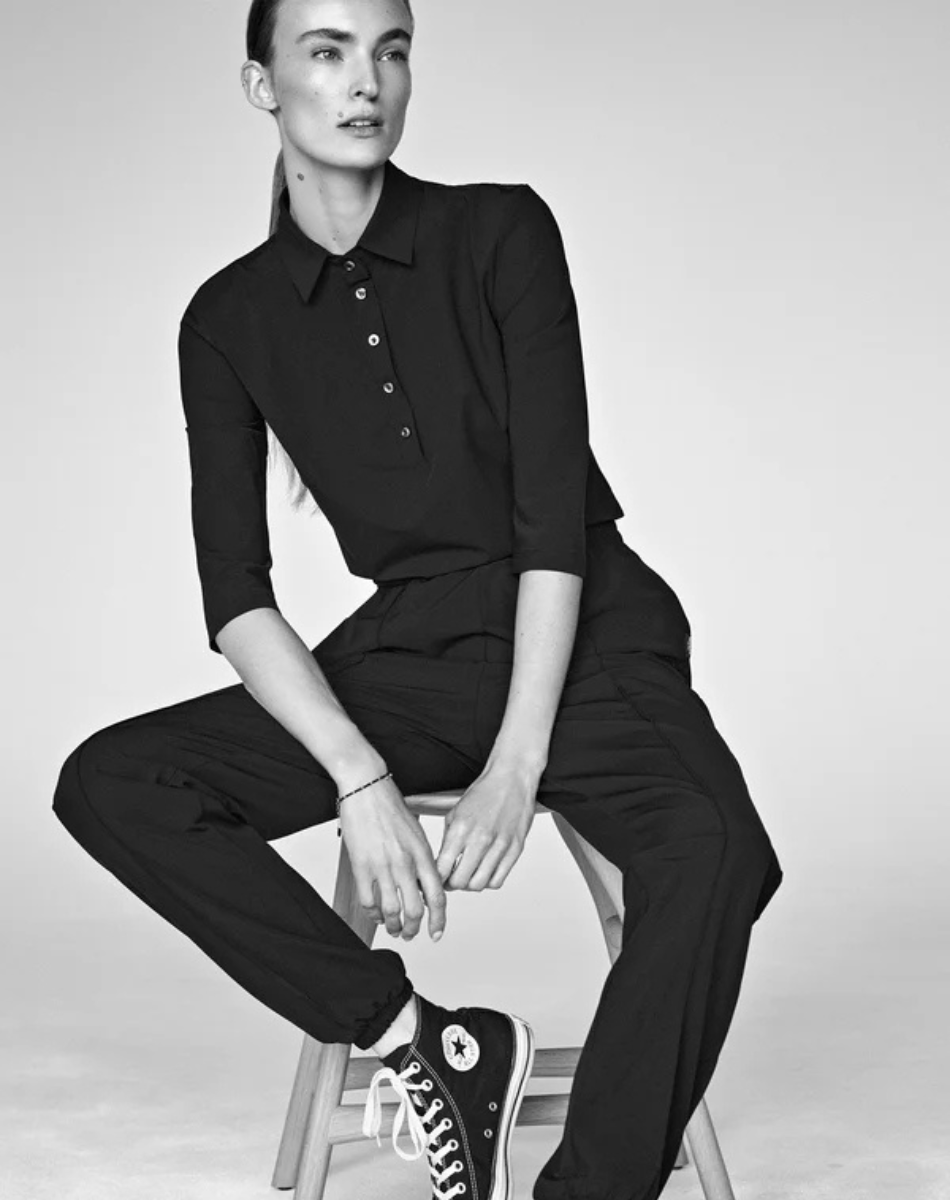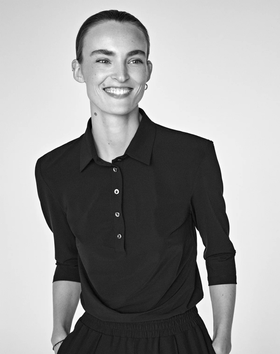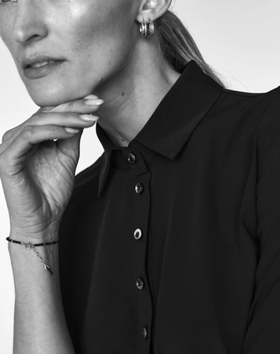 Haut essentiel de notre collection basiques, confectionné dans notre tissu de voyage doux et confortable.